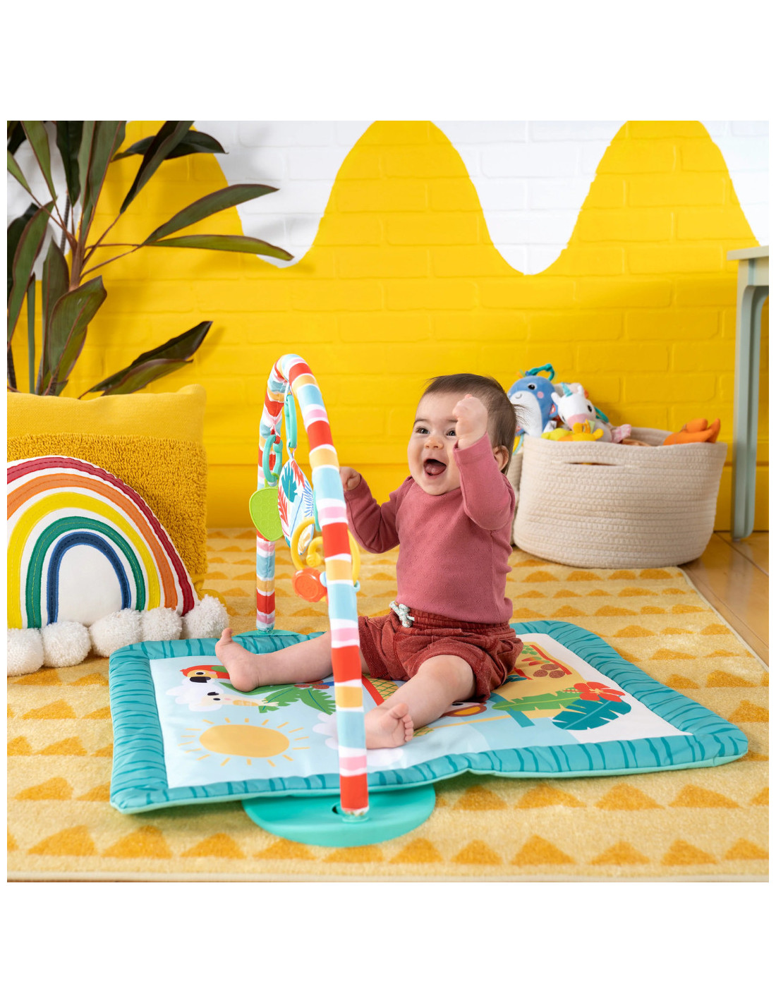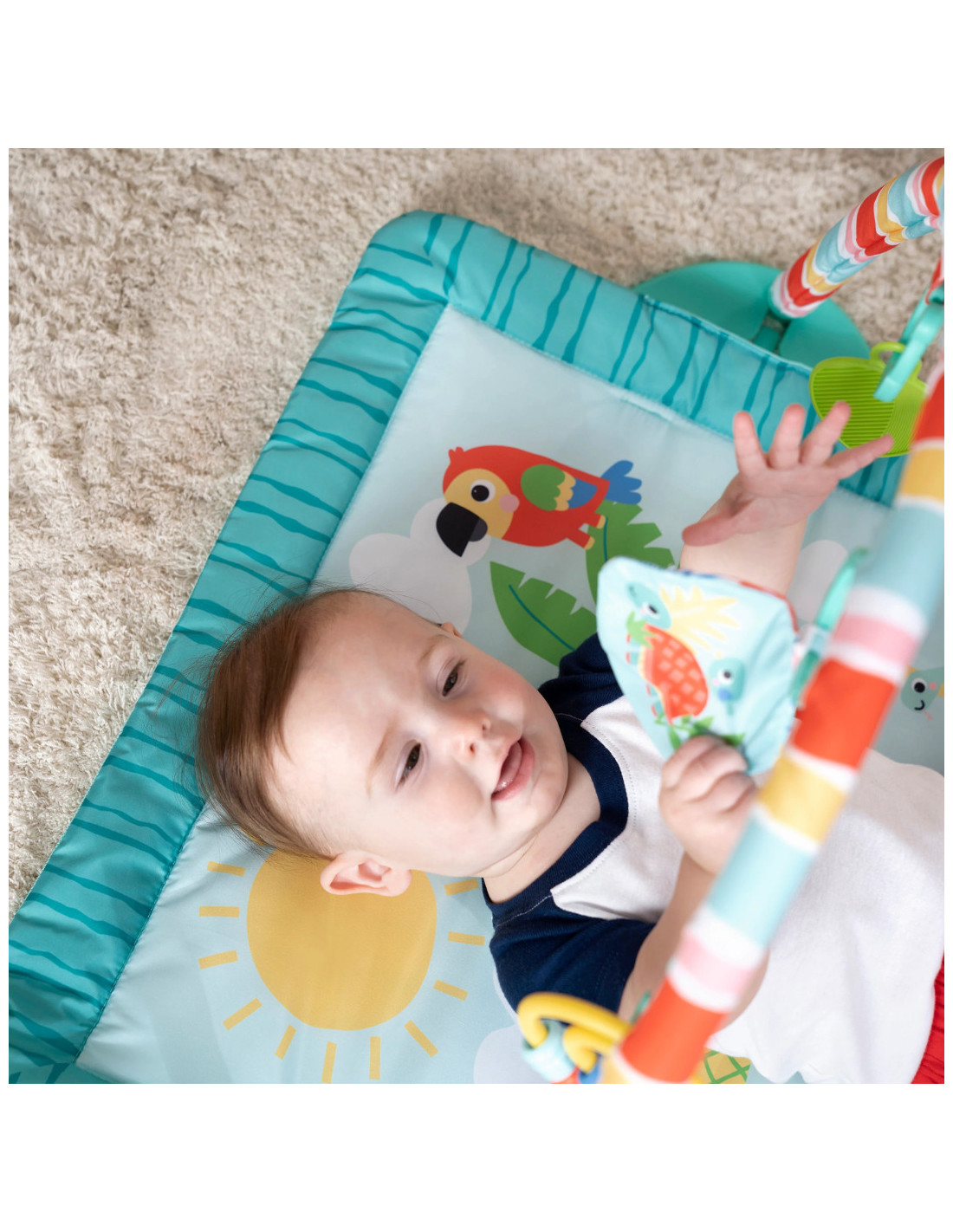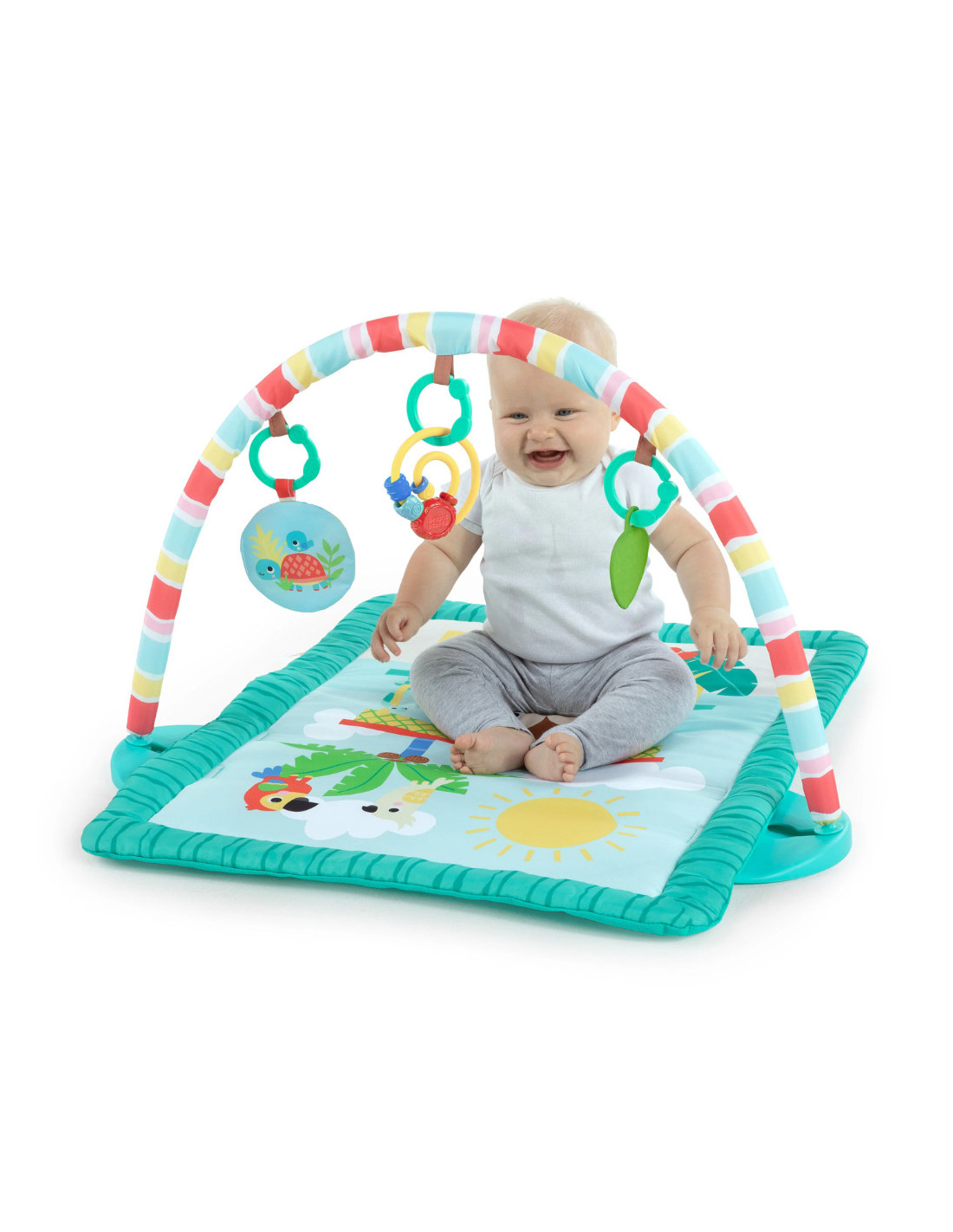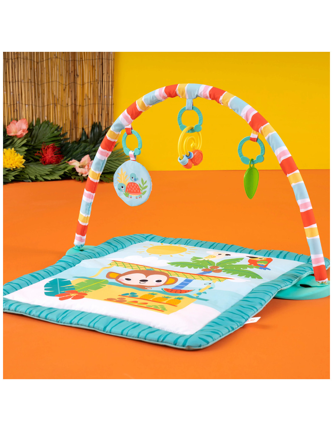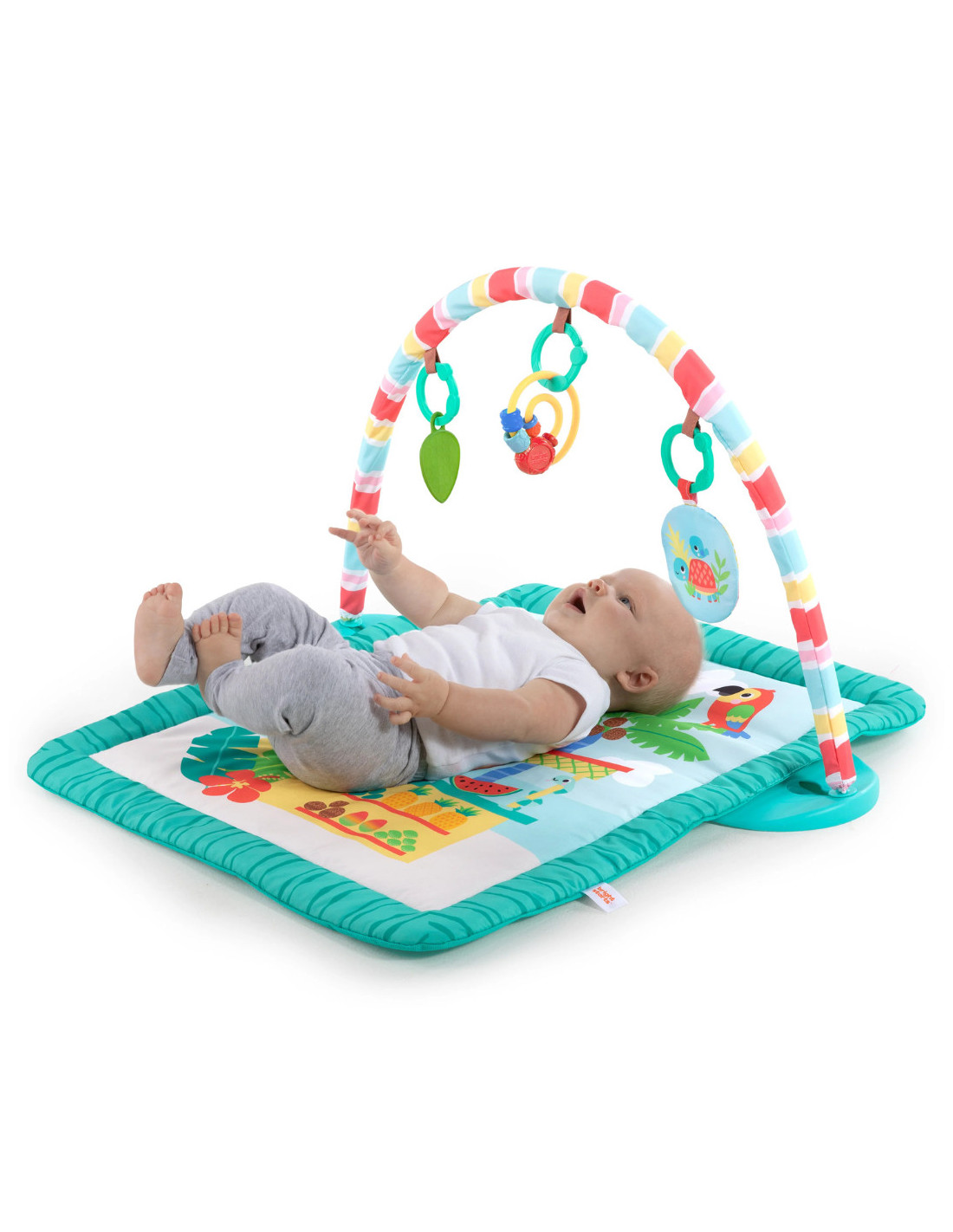 Transforma timpul pe burtica intr-o adevarata vacanta cu salteluta de joaca Bright Starts Tiki Toy Bar! Cu un design inspirat din tropice si jucarii interactive, aceasta salteluta stimuleaza dezvoltarea bebelusului prin joaca si explorare senzoriala.