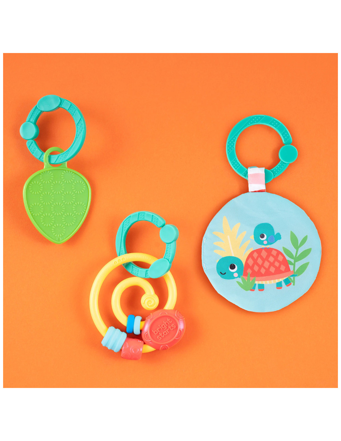 Compatibila cu alte jucarii – sispune de 3 inele de prindere, astfel incat sa puteti adauga jucariile preferate ale bebelusului.