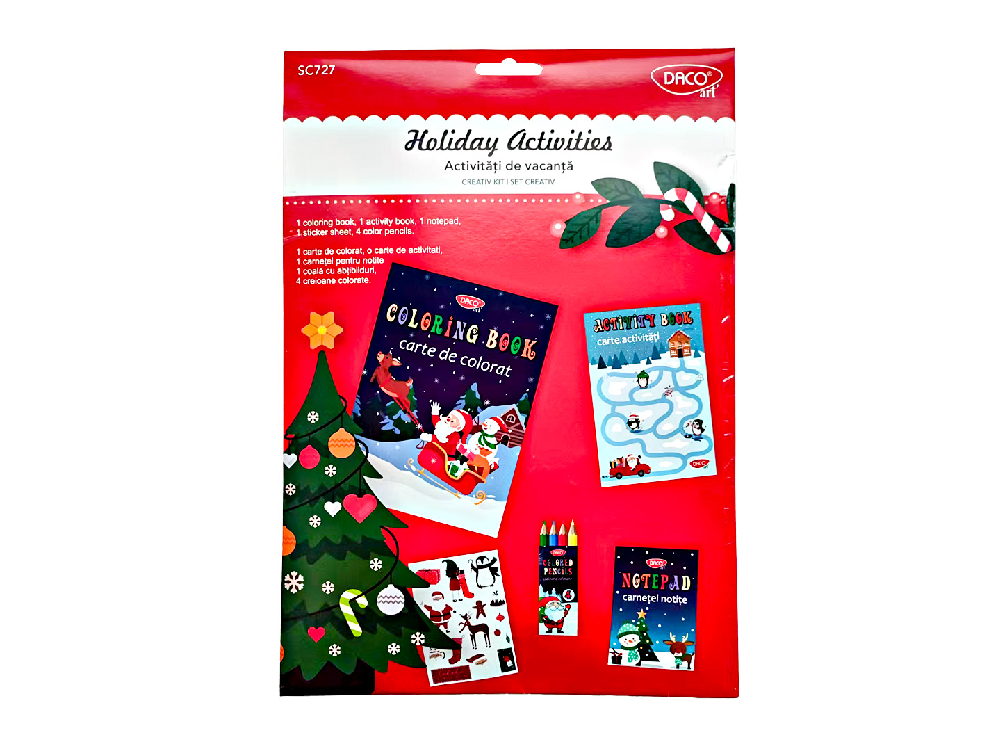 • Include cărți tematice de Crăciun – colorat + activități distractive