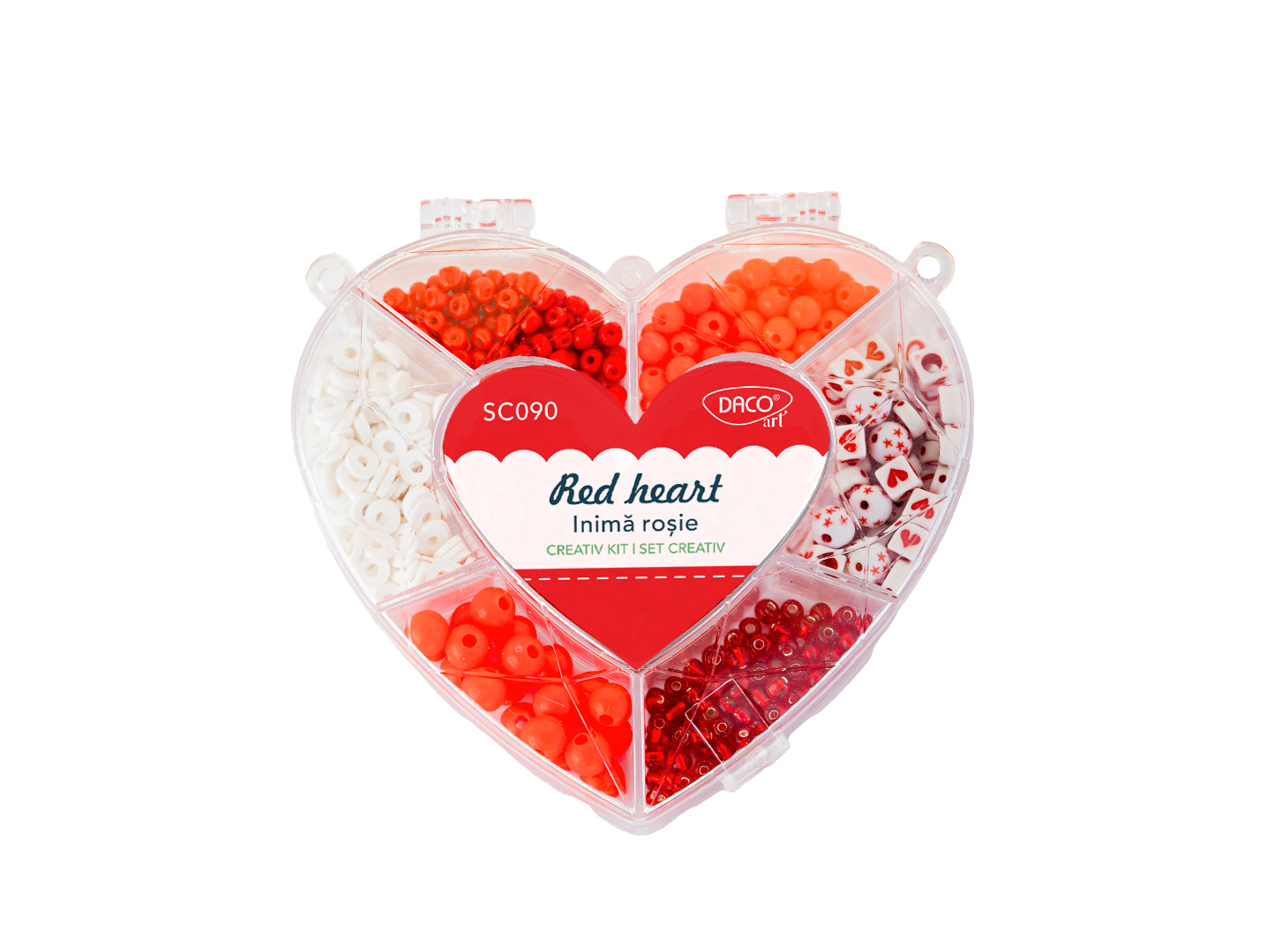 • Set Creativ DACO – Inimă Roșie, 50 g de mărgele colorate