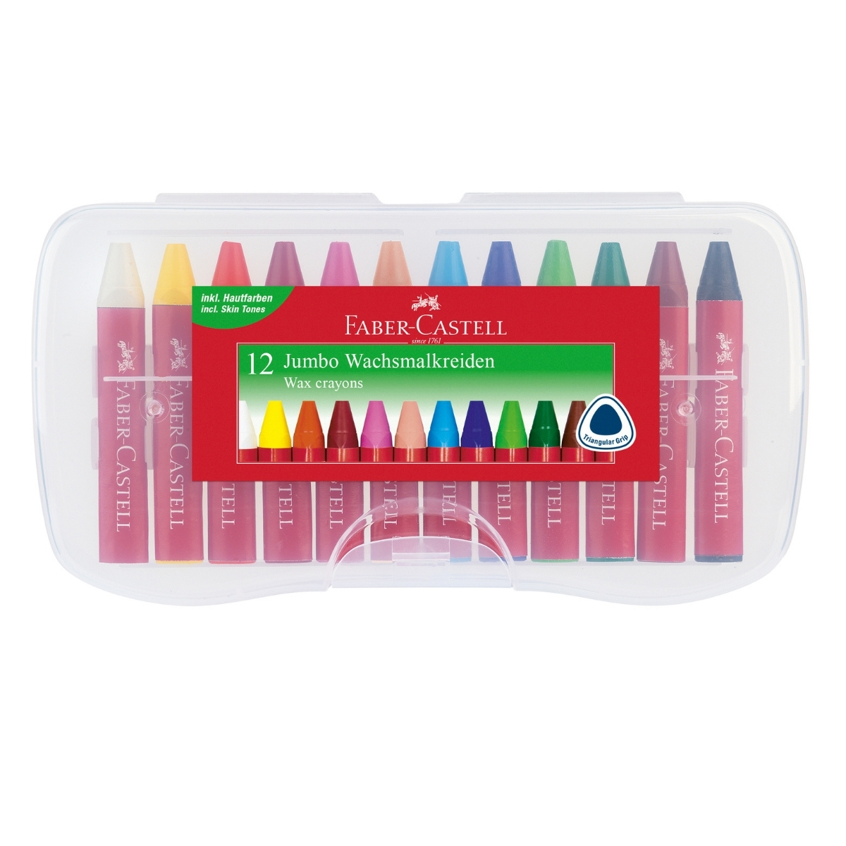 Creioane cerate Jumbo Faber-Castell FC120011, cutie plastic, 12 culori