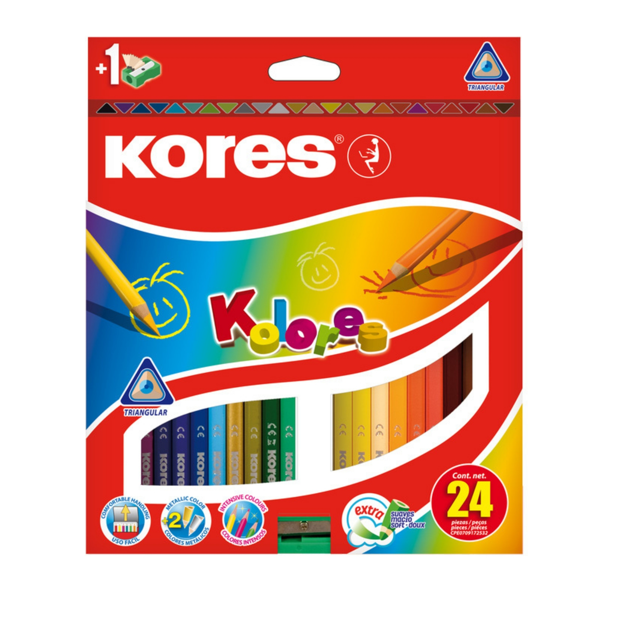 Creioane Colorate Triunghiulare KORES KO93324, 24 Culori + Ascutitoare