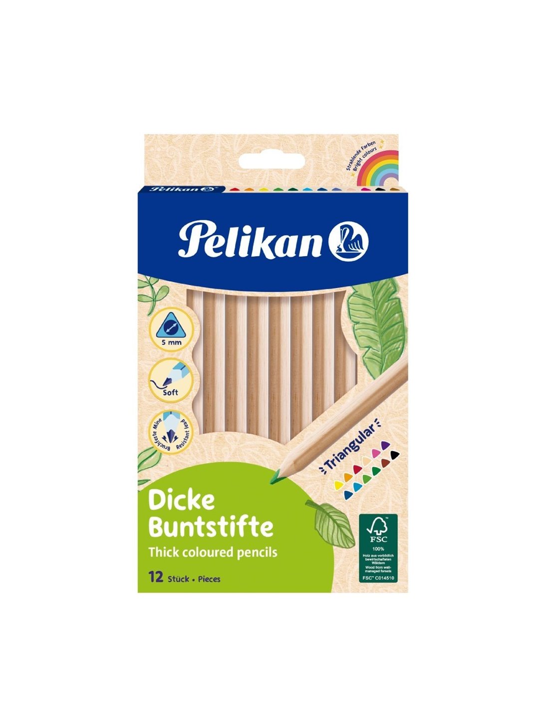 Creioane Colorate Pelikan Triunghiulare Groase, Set 12 Buc
