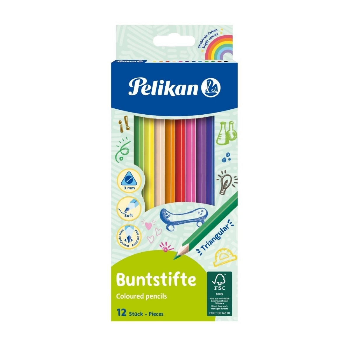 Creioane Colorate Pelikan Sectiune Triunghiulara, Set 12 Culori