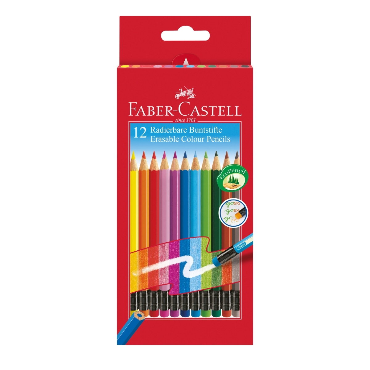 Alege un set complet, practic și ecologic cu Creioanele colorate Eco Faber-Castell FC116612, ce conține 12 culori vibrante, fiecare cu gumă de șters în culoarea minei – ideale pentru școală, desen sau activități de zi cu zi.