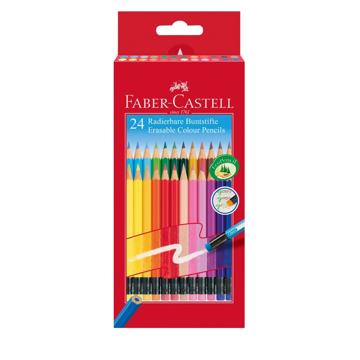 Creioane colorate FABER-CASTELL FC116625, 24 culori cu guma