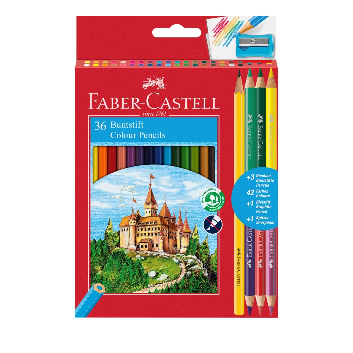 • Set Faber-Castell FC110336 – 36 creioane colorate + 3 bicolore + 1 ascuțitoare