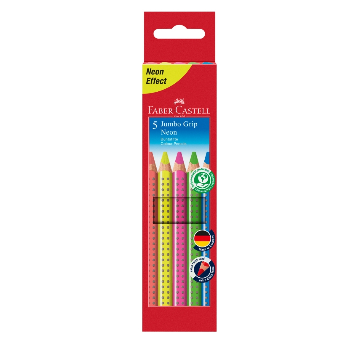• Set Faber-Castell FC110994 – 5 creioane colorate neon Jumbo Grip