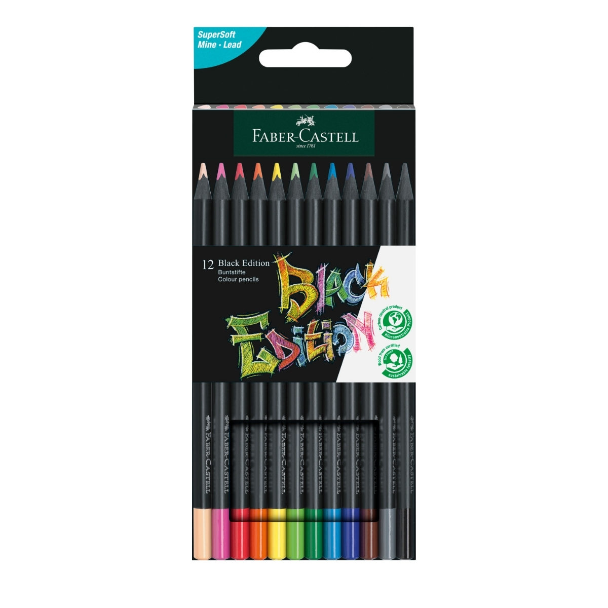 Creioane colorate Faber-Castell Black Edition FC116412, 12 culori