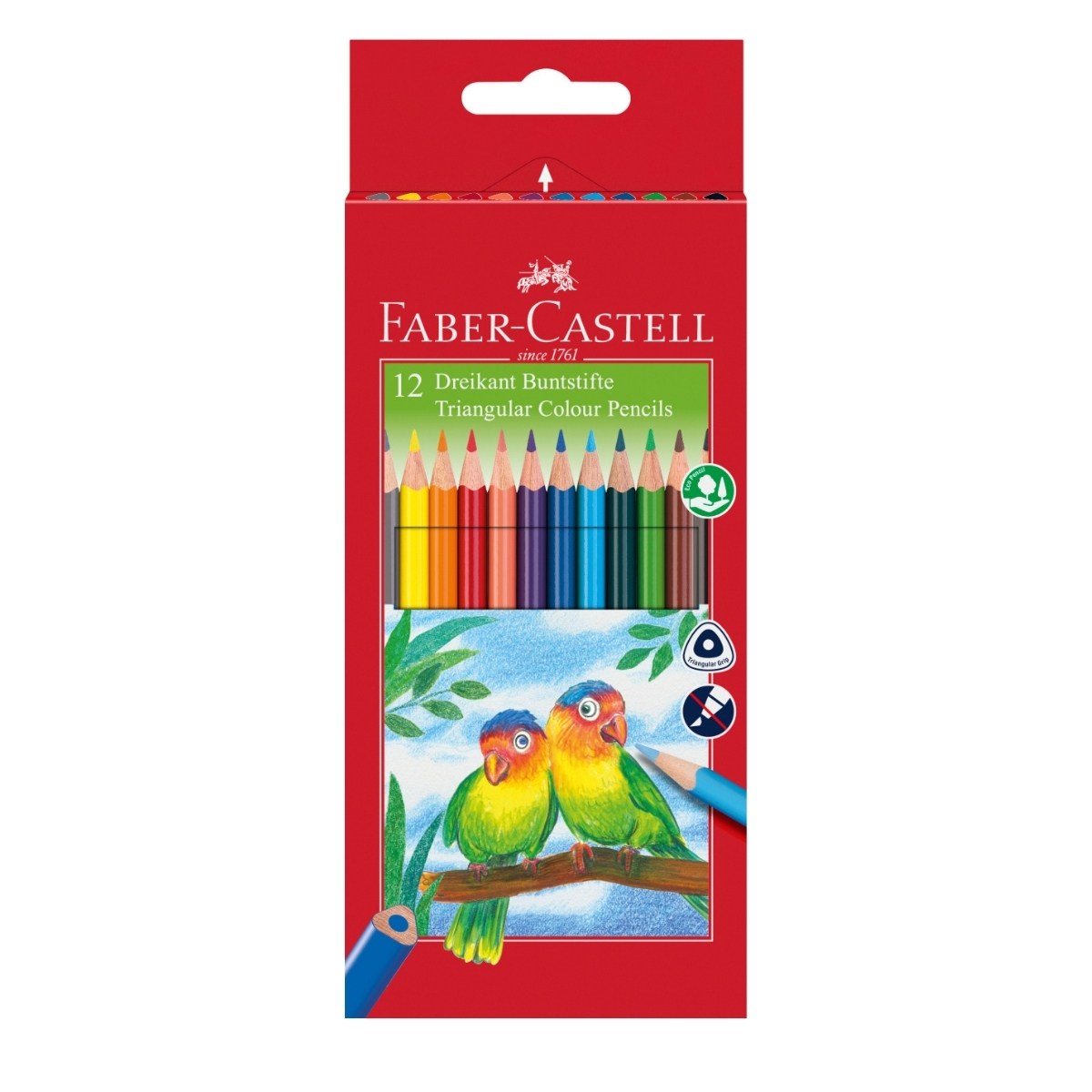 Creioane colorate triunghiulare Faber-Castell FC120523, 12 culori + ascutitoare