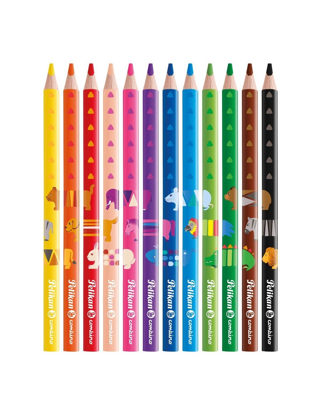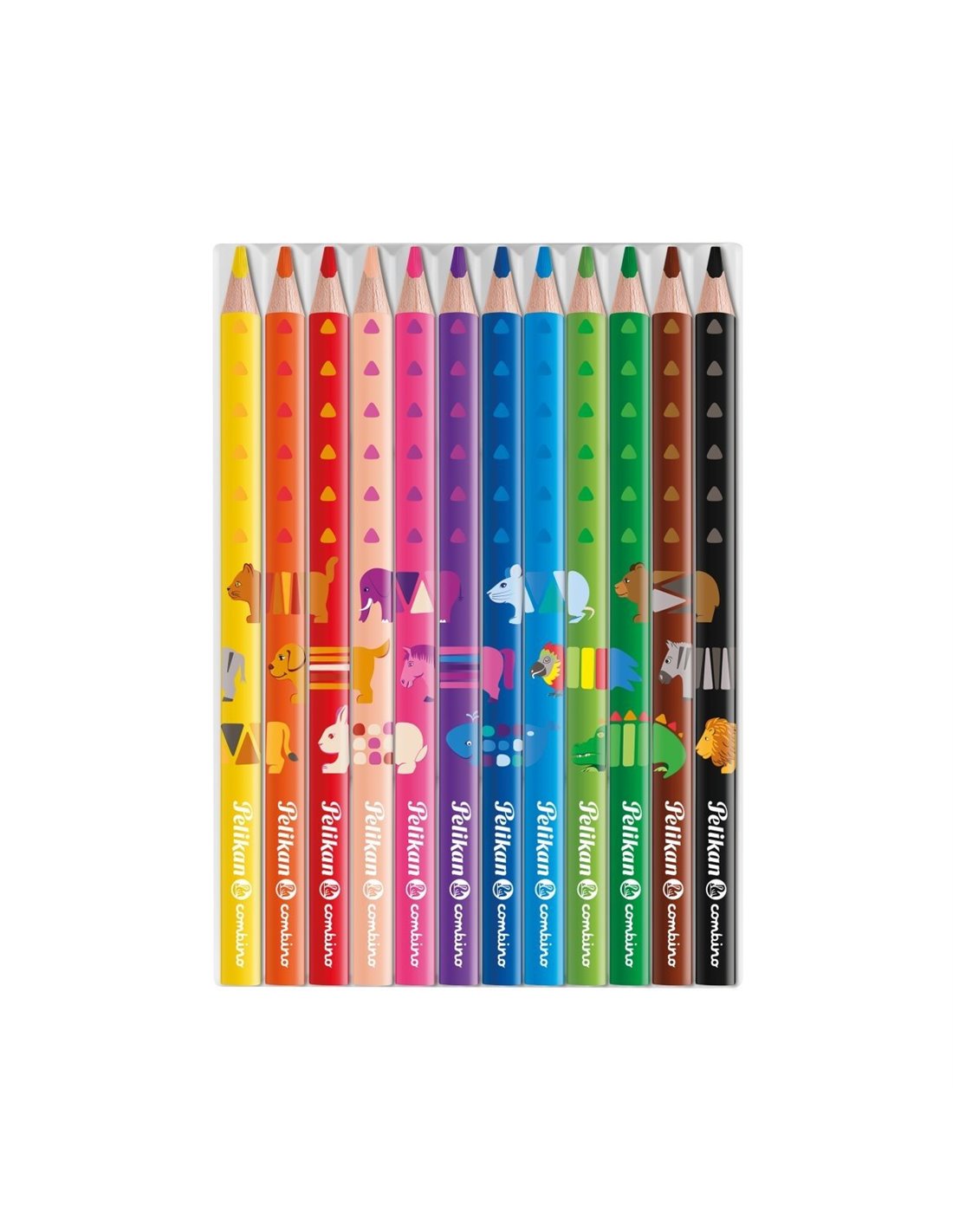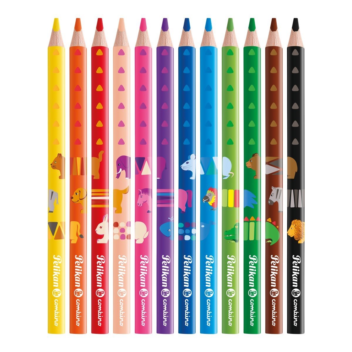 Set 12 creioane colorate combino lacuite groase Pelikan, sectiune triunghiulara