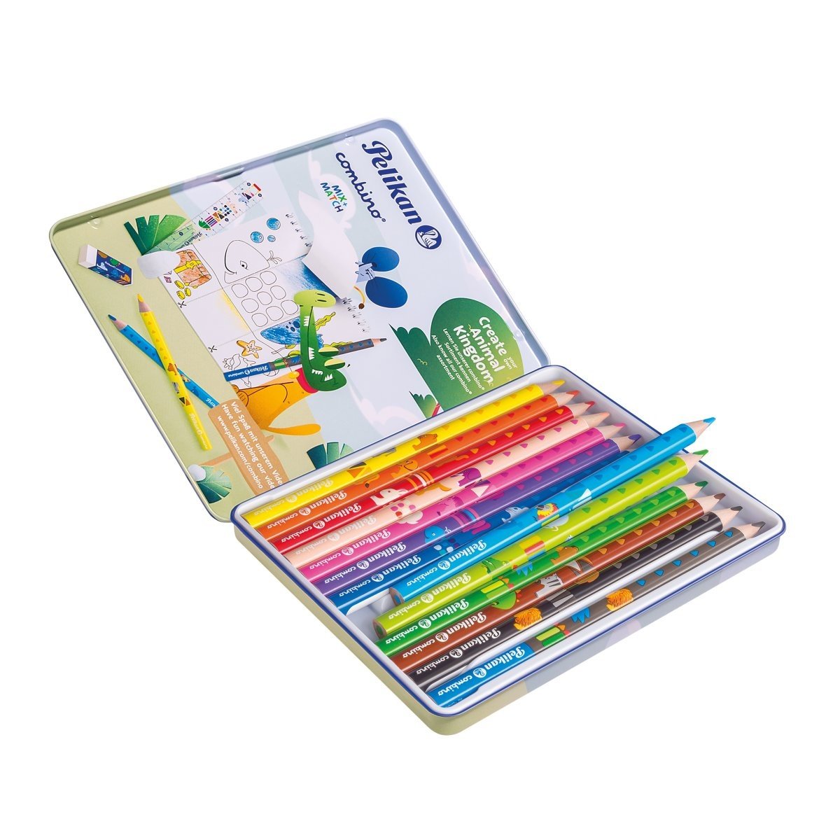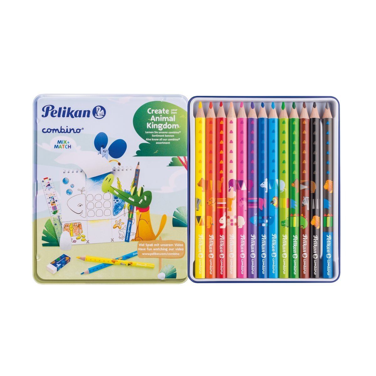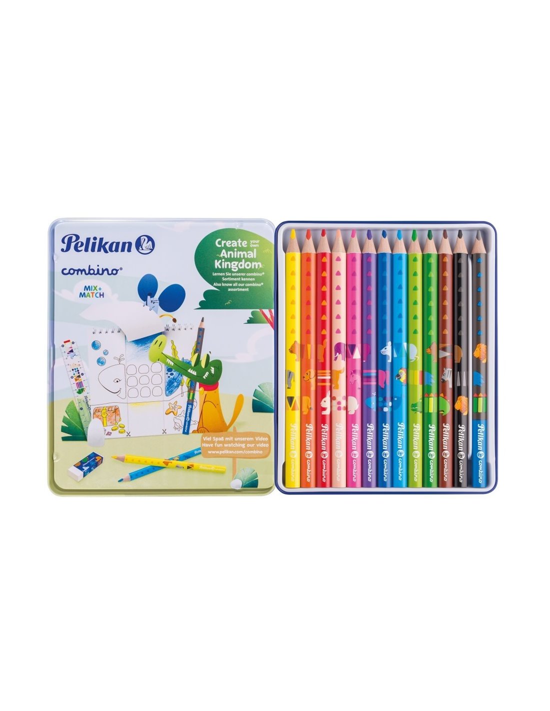 Creioane Color Combino, Set 12 Culori + 1 Creion Grafit Invata Sa Scrii, Cutie De Metal Pelikan