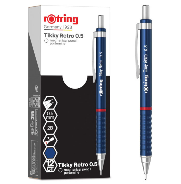 Echipat cu radieră incorporată, creionul permite corectarea rapidă a greșelilor, fiind extrem de practic. Vârful de 0.5 mm oferă o scriere fină și precisă, ideală pentru notițe detaliate, schițe sau desene tehnice. Culoarea albastră a corpului se combină perfect cu gama de culori retro îndrăznețe disponibile, adaptându-se oricărui stil personal.