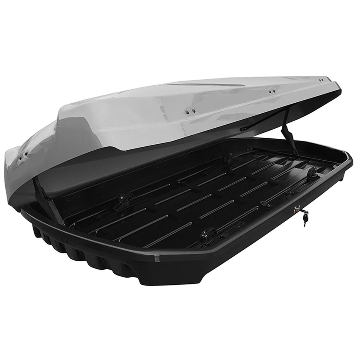Continut pachet : Cutie portbagaj,Prinderi pe bare transversale,Chingi pentru fixare bagaje