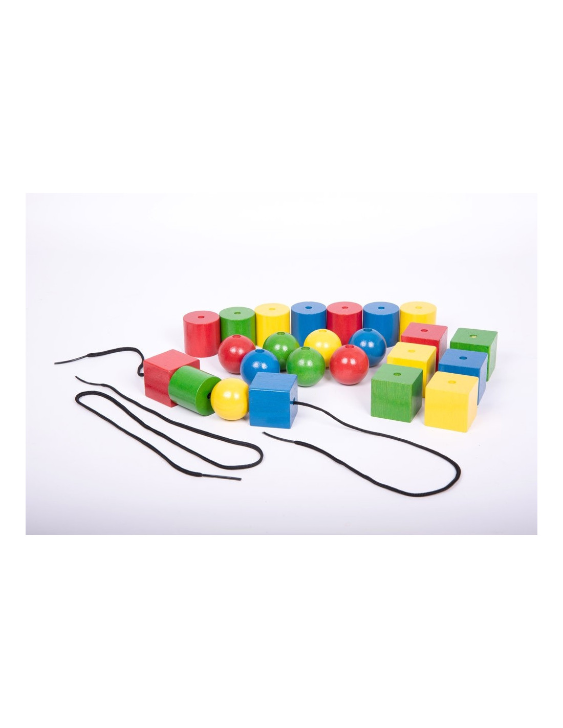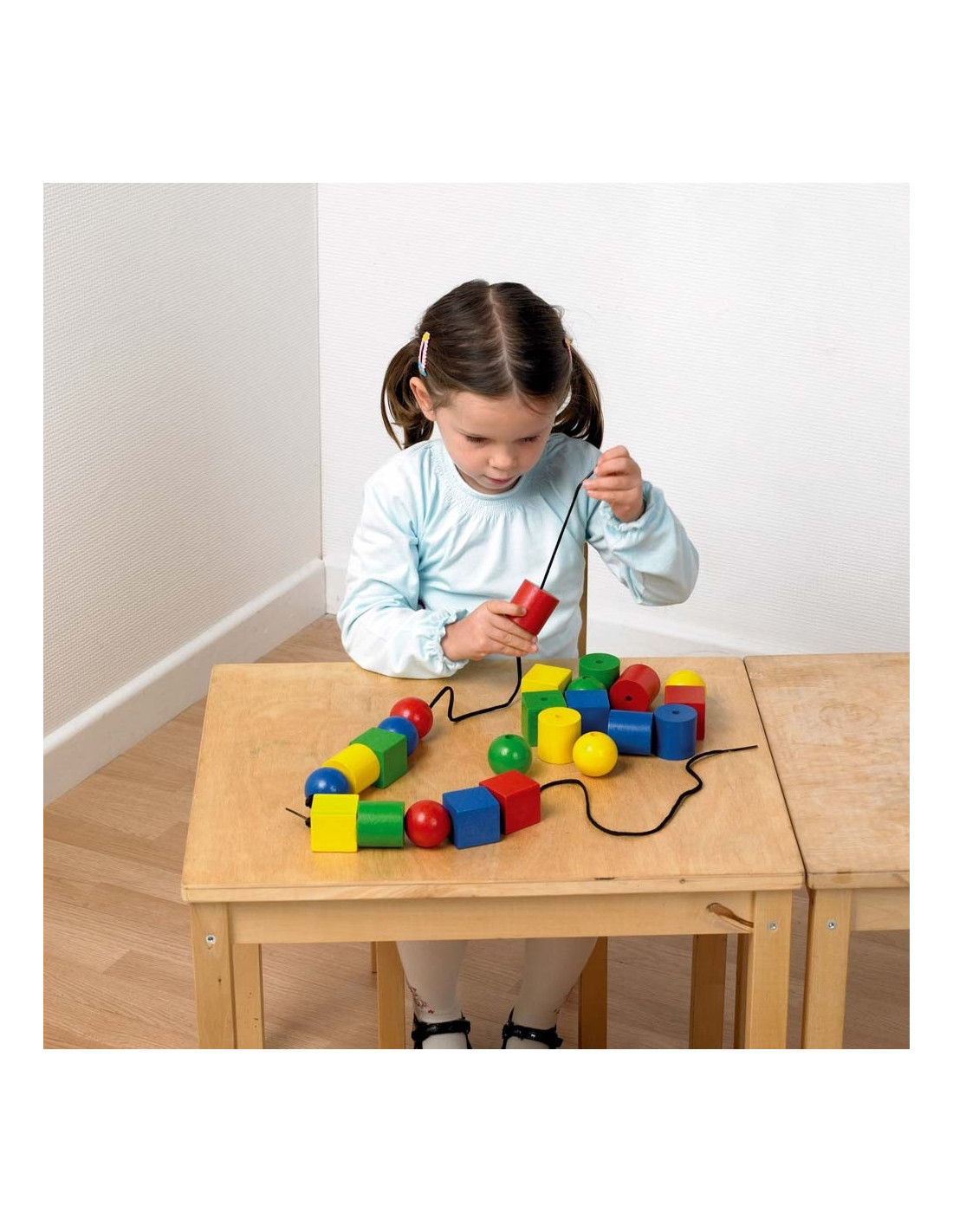 Set margele GIGANT , Joc educativ pentru sortare si insirare Joaca practica pentru cei mici Setul de margele GIGANT este ideal pentru activitati de sortare, recunoastere a culorilor si dezvoltarea motricitatii fine. Margelele mari sunt usor de prins si de manevrat, perfecte pentru copiii mici. Invatare prin insirare Cu ajutorul snururilor incluse, copiii isi pot exersa coordonarea mana-ochi si abilitatile de concentrare, in timp ce creeaza modele colorate si secvente simple. Beneficii educative Motricitate fina: manipulare si coordonare Matematica timpurie: sortare, numarare si modele Creativitate: design si joc imaginativ Detalii produs 24 margele mari (diametru 45 mm) 3 forme diferite in 4 culori 2 snururi de 900 mm pentru insirare Varsta recomandata: 3+ ani