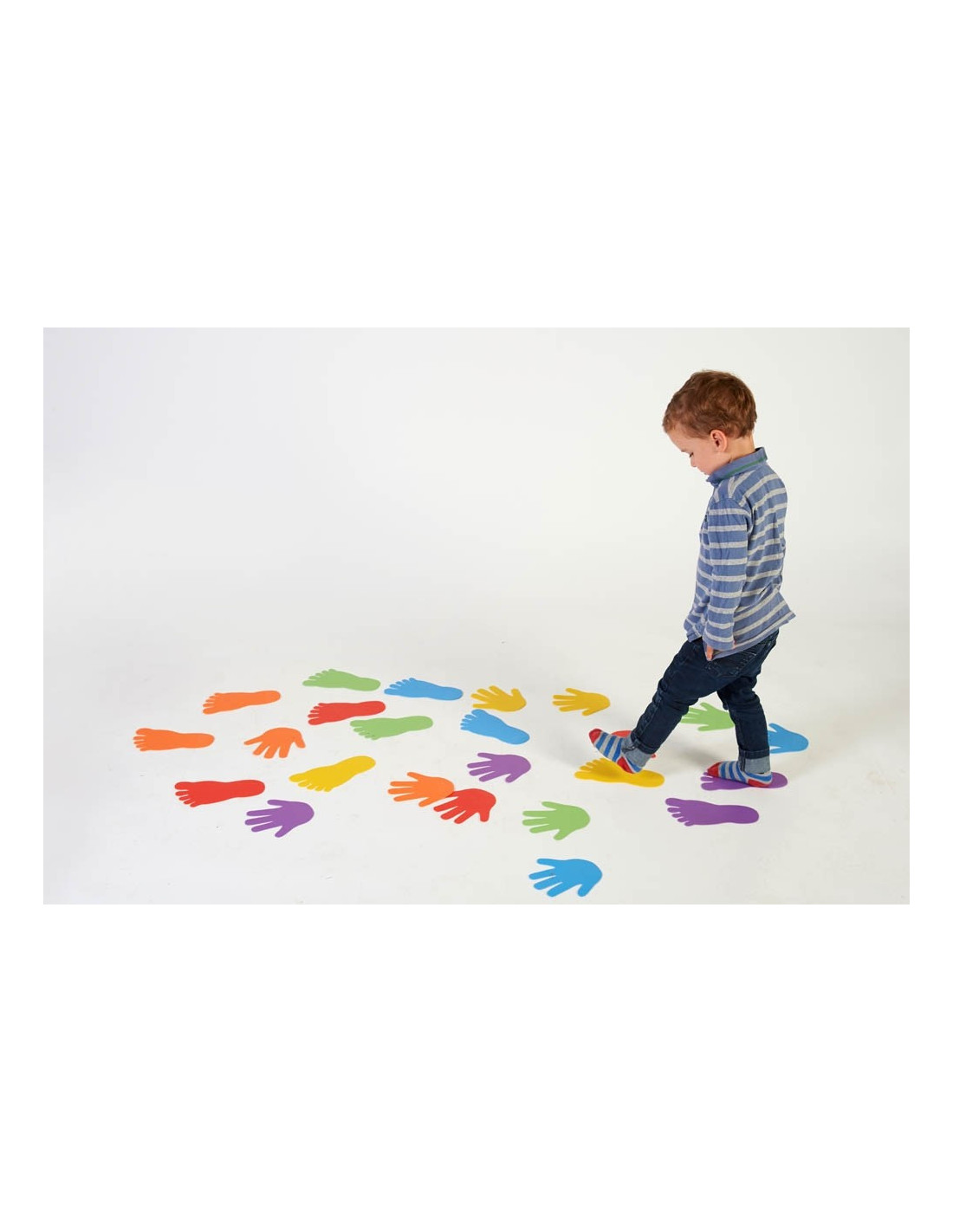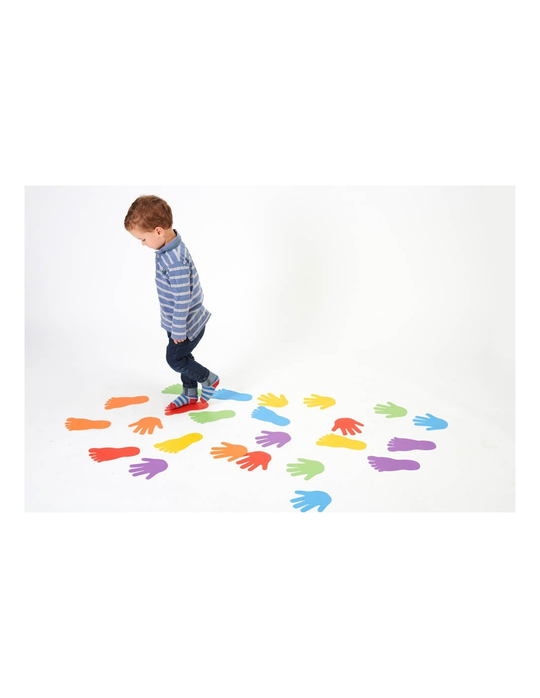 Set de 6 Perechi Urme de Maini , Joc de Motricitate pentru Dezvoltarea Abilitatilor Fizice ale Copiilor Setul de 6 perechi urme de maini este perfect pentru activitati de motricitate care ajuta copiii sa isi dezvolte abilitati fizice esentiale, precum coordonarea si echilibrul . Fiecare pereche de urme este realizata din plastic moale pentru a asigura siguranta si confortul in timpul jocului. Cu dimensiunea de 14x14 cm , urmele sunt ideale pentru a fi folosite in activitati interactive care imbunatatesc miscarile motrice fine si grosiere ale celor mici. Aceste urme colorate sunt disponibile in sase culori diferite, ceea ce le face atractive si ajuta copiii sa invete prin explorare vizuala si activitati senzoriale . Setul este ideal pentru a incuraja jocuri educative , activitati de grup si pentru dezvoltarea perceptiei spatiale . Caracteristici: Set de 6 perechi urme de maini Culori: diverse, pentru stimularea imaginatiei si coordonarii vizual-motorii Dimensiune: 14x14 cm Material: plastic moale, sigur pentru copii Ideal pentru jocuri de motricitate si activitati educationale