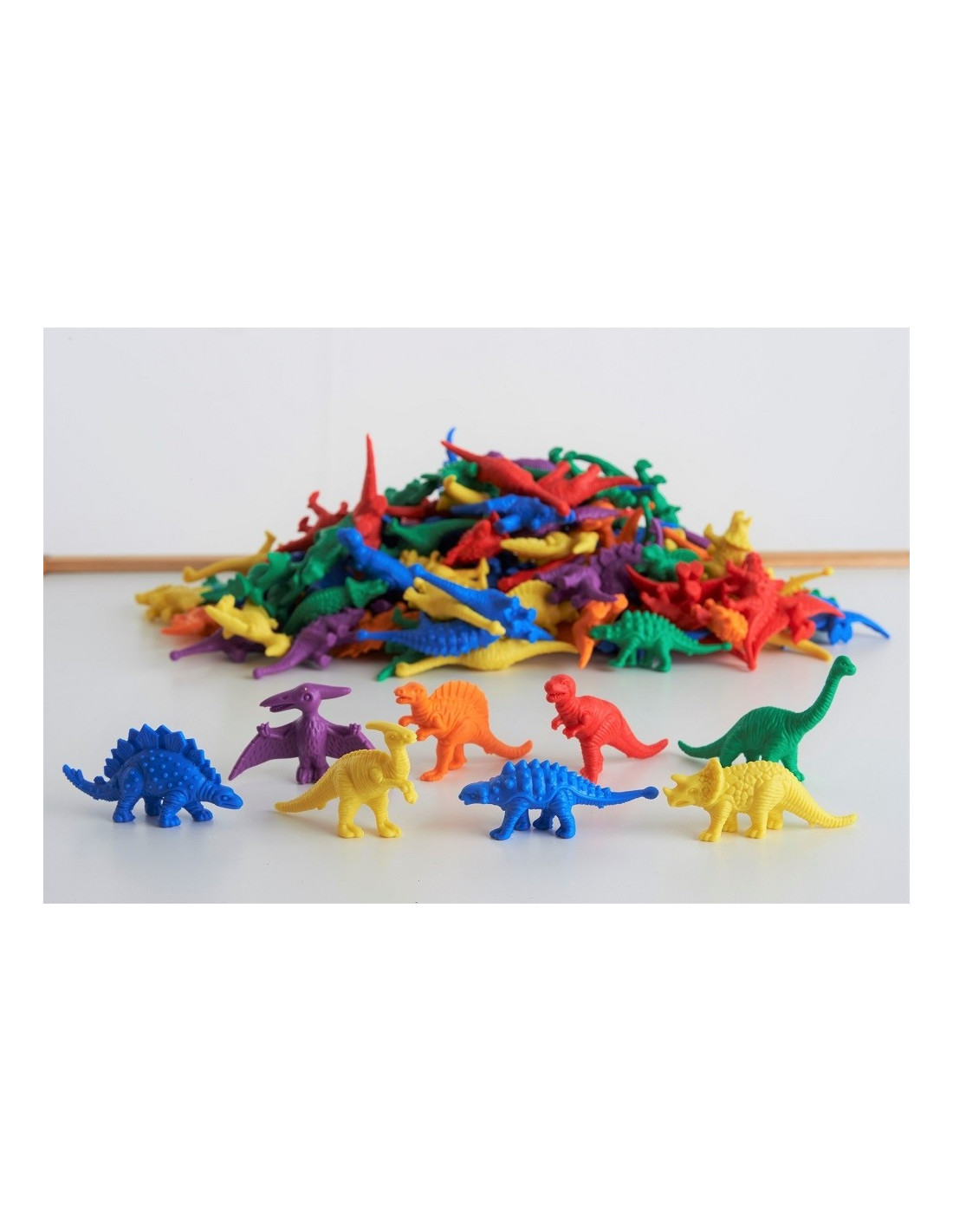 Joc sortare DINOZAURI , Set de 128 figurine educative multicolore Descopera lumea dinozaurilor prin joaca Acest set contine 128 de figurine detaliate reprezentand 8 specii de dinozauri (Stegosaurus, Brachiosaurus, Euoplocephalus, Triceratops, Tyrannosaurus Rex, Spinosaurus, Pterodactyl si Parasaurolophus), disponibile in 6 culori vii: rosu, albastru, verde, galben, violet si portocaliu. Invatare prin sortare si numarare Jocul este ideal pentru activitati de numarare, sortare, clasificare si crearea de modele. Figurinele pot fi utilizate si pentru exersarea operatiilor matematice simple precum adunarea, scaderea, impartirea sau multiplicarea. Beneficii educative Setul contribuie la mai multe arii de dezvoltare: Matematica: numarare, sortare si operatii simple Dezvoltare fizica: abilitati motrice fine prin manipulare Intelegerea lumii: recunoasterea culorilor si explorarea temei dinozaurilor Arte si design: joc imaginativ si creativitate Detalii produs Numar piese: 128 figurine dinozauri Dimensiune medie figurine: aprox. 50 mm Varsta recomandata: 3+ ani