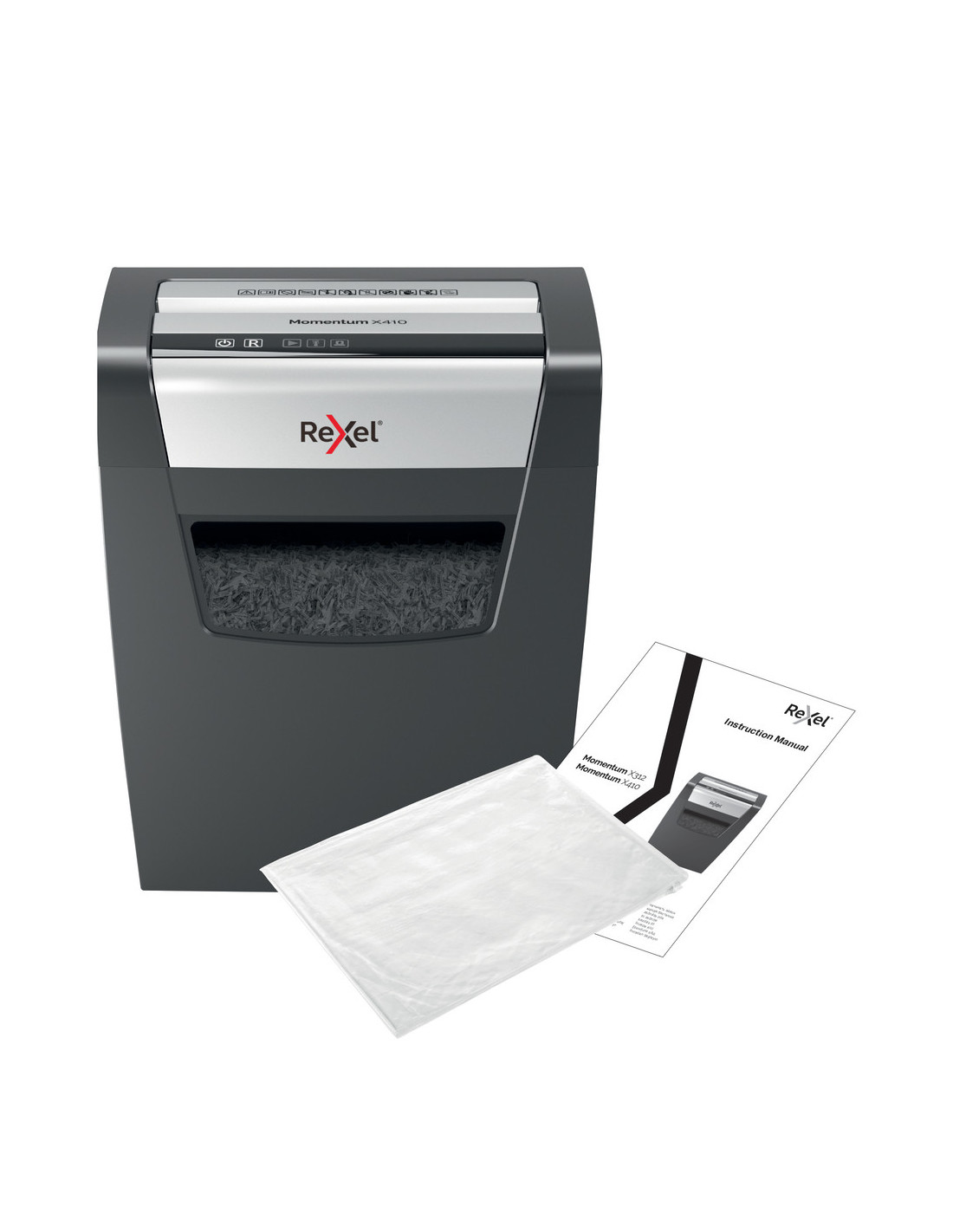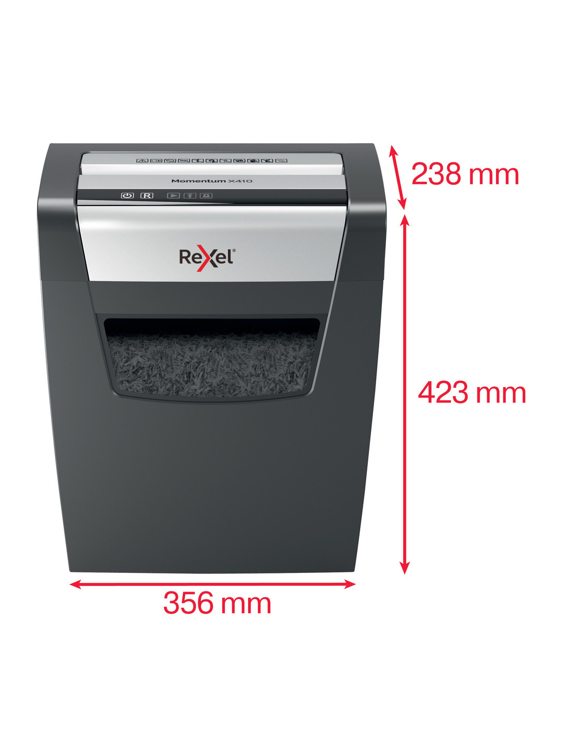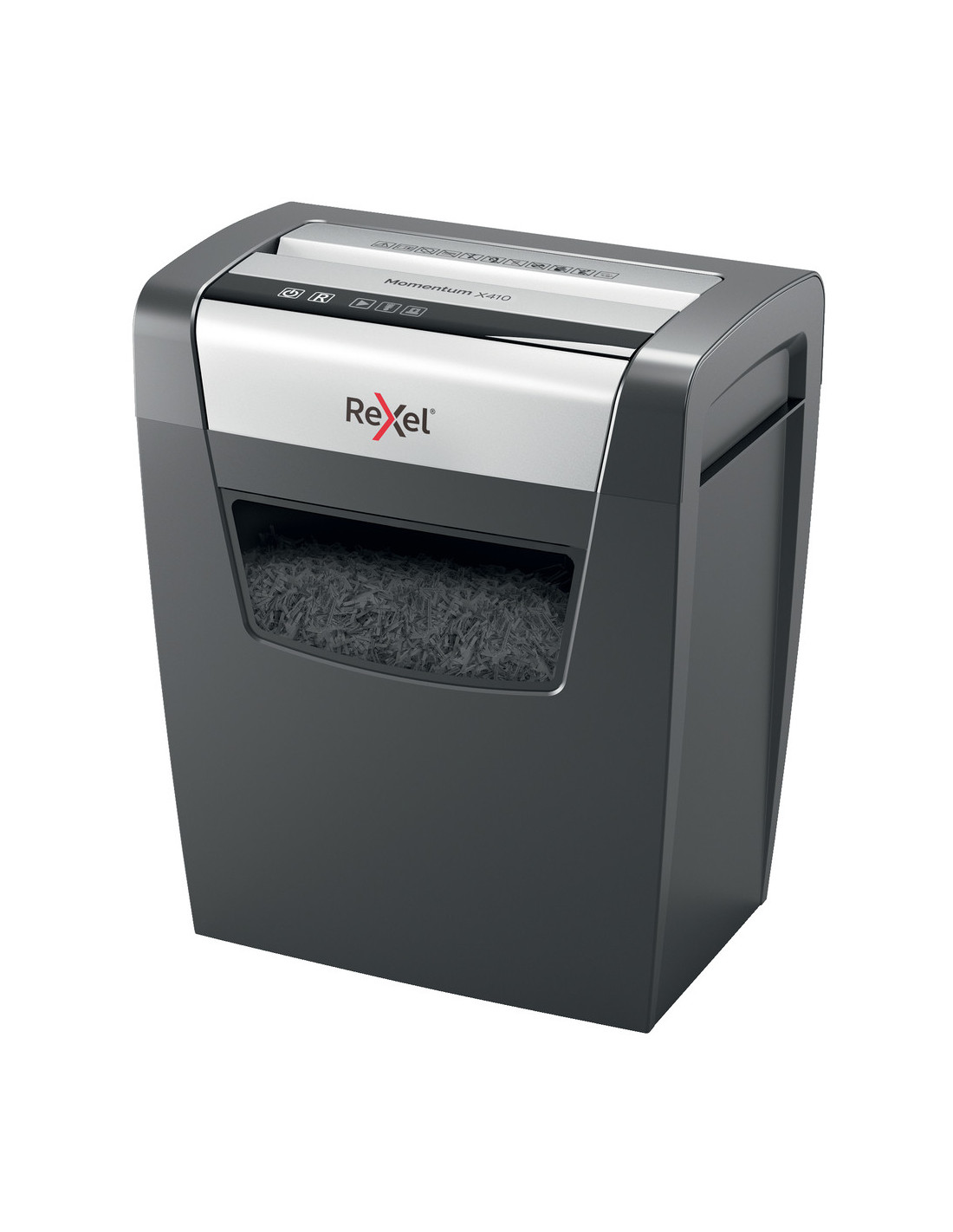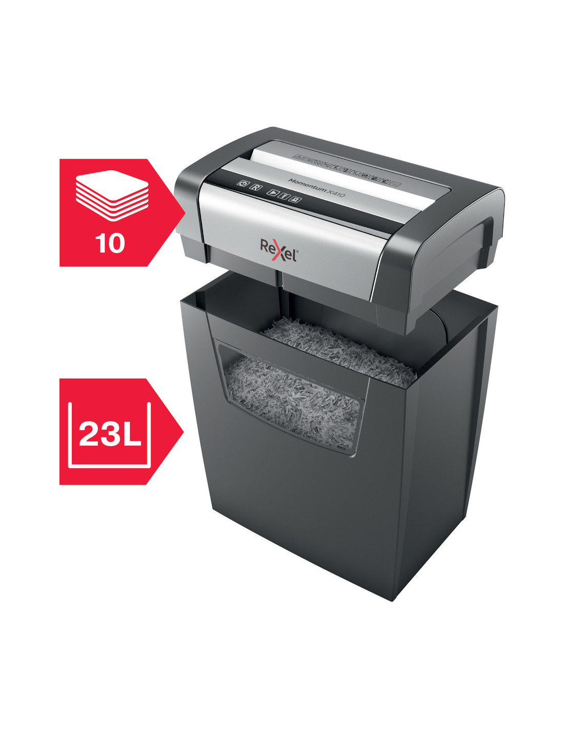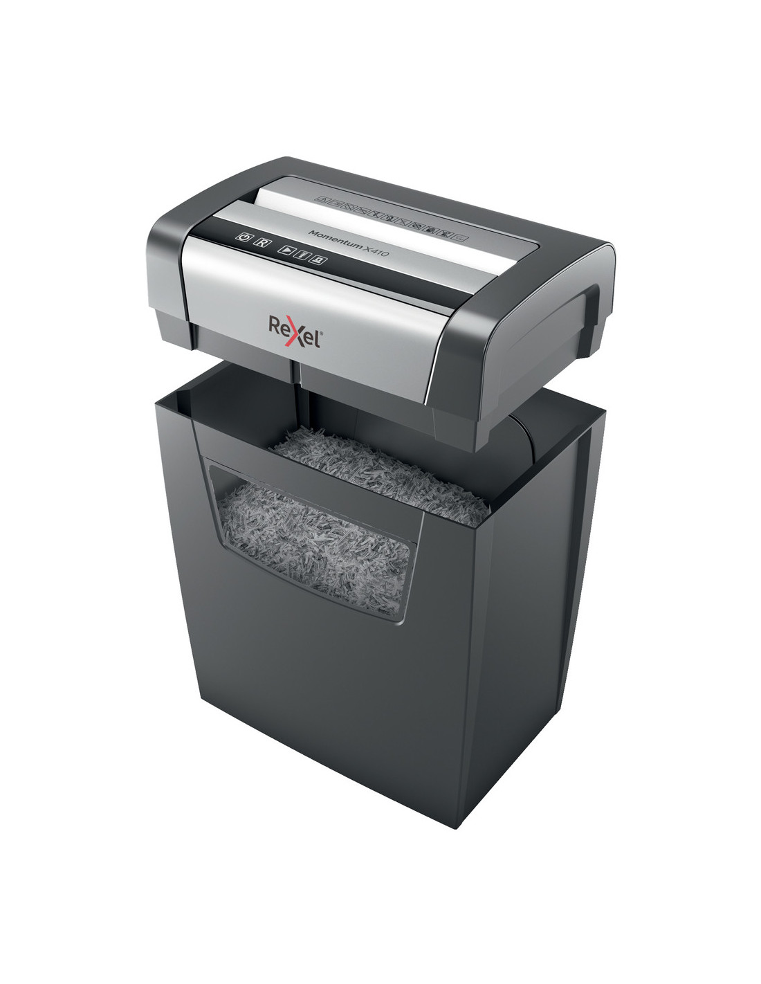 Distrugatorul Rexel Momentum X410 distruge pana la 10 coli de hartie o data.
