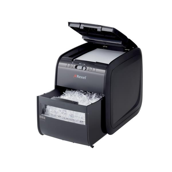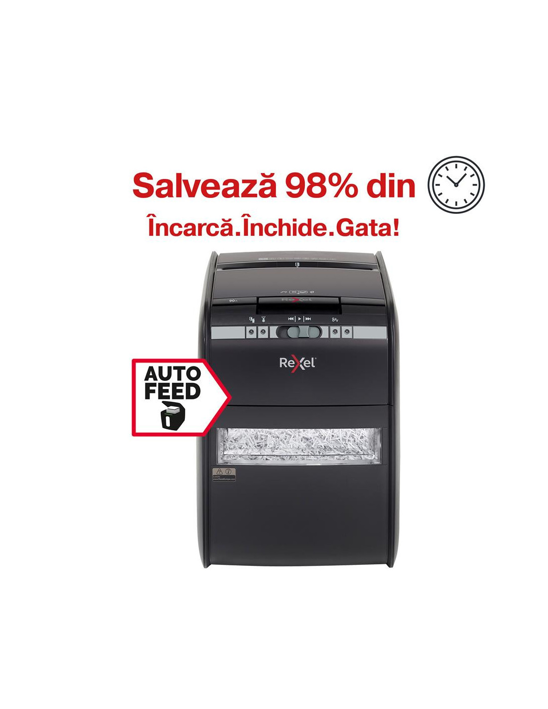 Modelul Auto+ 90X cross cut distruge automat pana la 90 coli (80 gsm) sau 100 coli (70 gsm) in bucati tip confeti (4x45mm), nivel de securitate P-3.