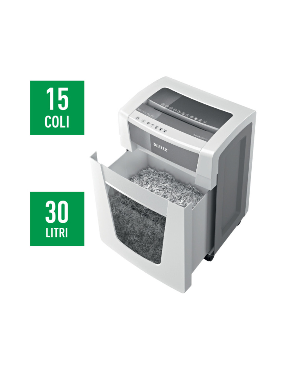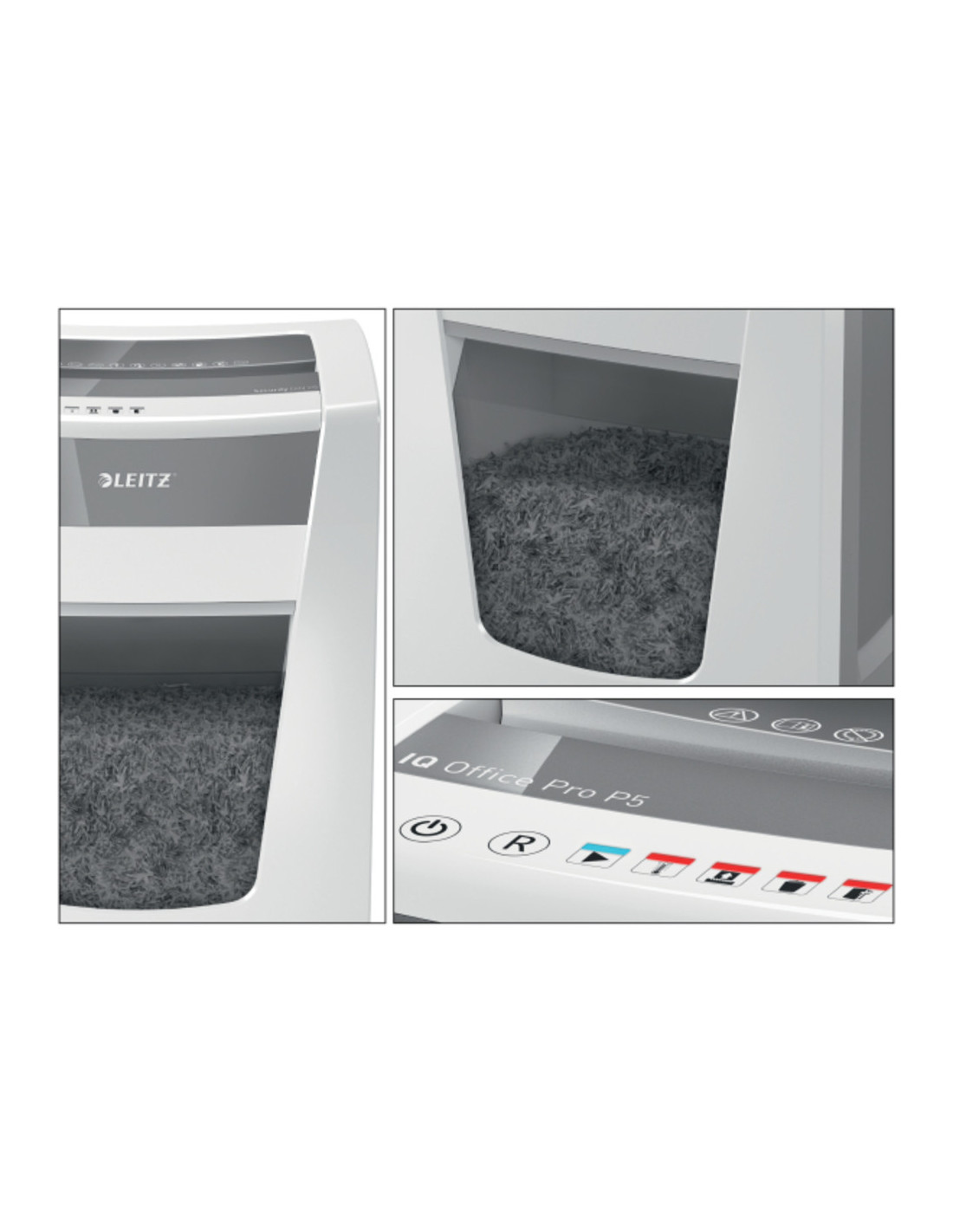 Distrugator documente manual LEITZ IQ Office Pro, P5, micro-cut (particule), 15 coli, cos 30l, alb