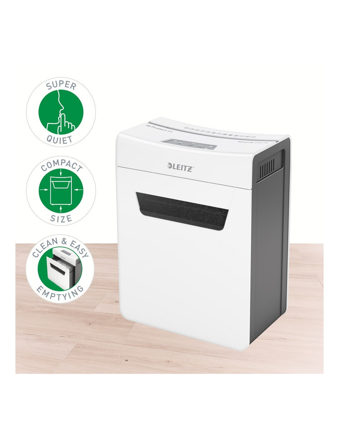 Distrugatorul Leitz IQ Protect, fiind extra silentios, asigura un mediu de lucru calm si nu deranjeaza in timp ce indeplinesti sarcinile zilnice.