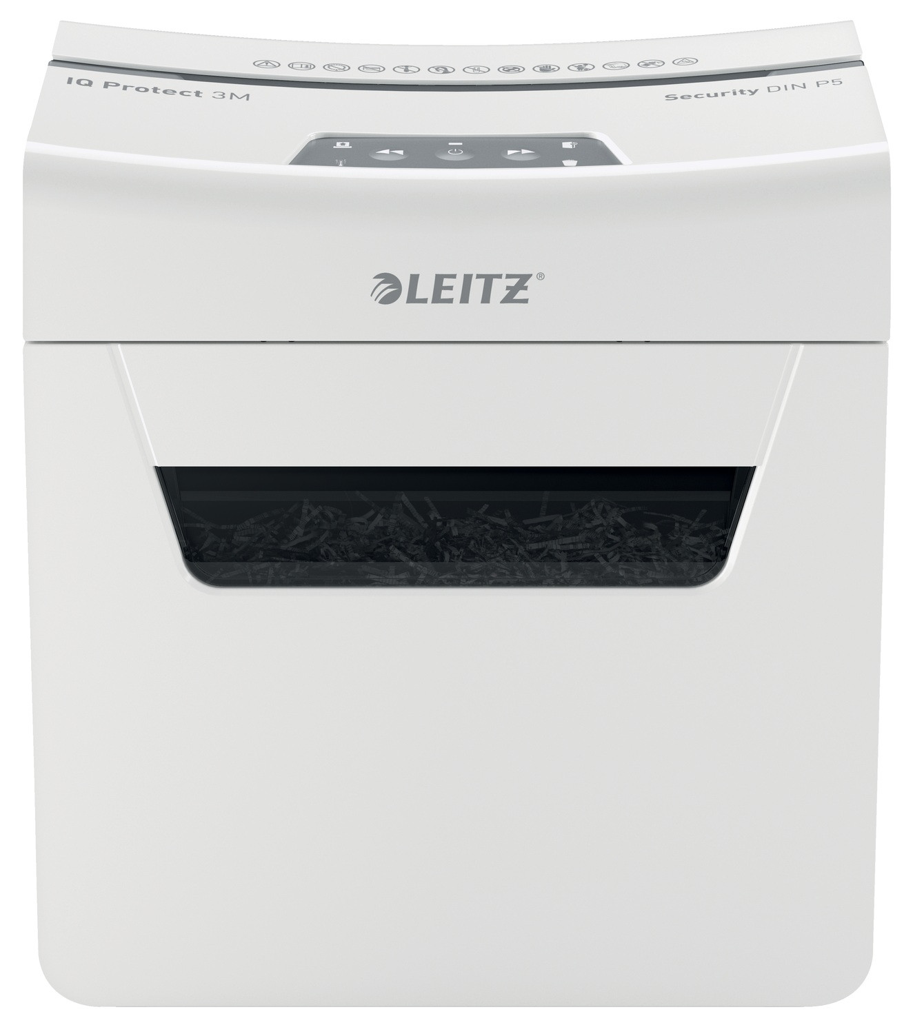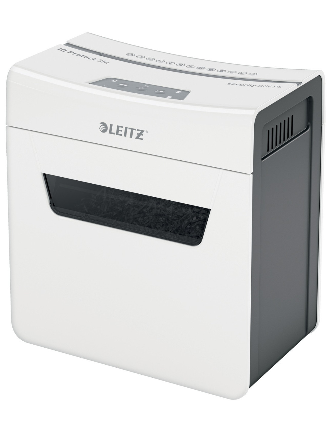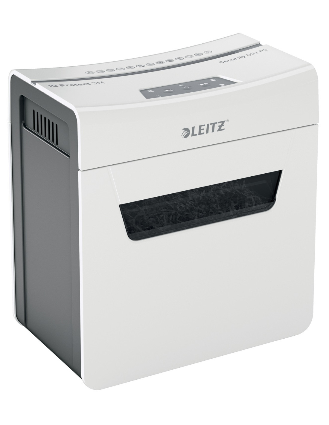 Distrugator manual documente Leitz IQ Protect 3M , 3 coli, P5, micro-cut (tip particule), cos 10 litri, alb, Leitz "80930000" (include TV 10lei)