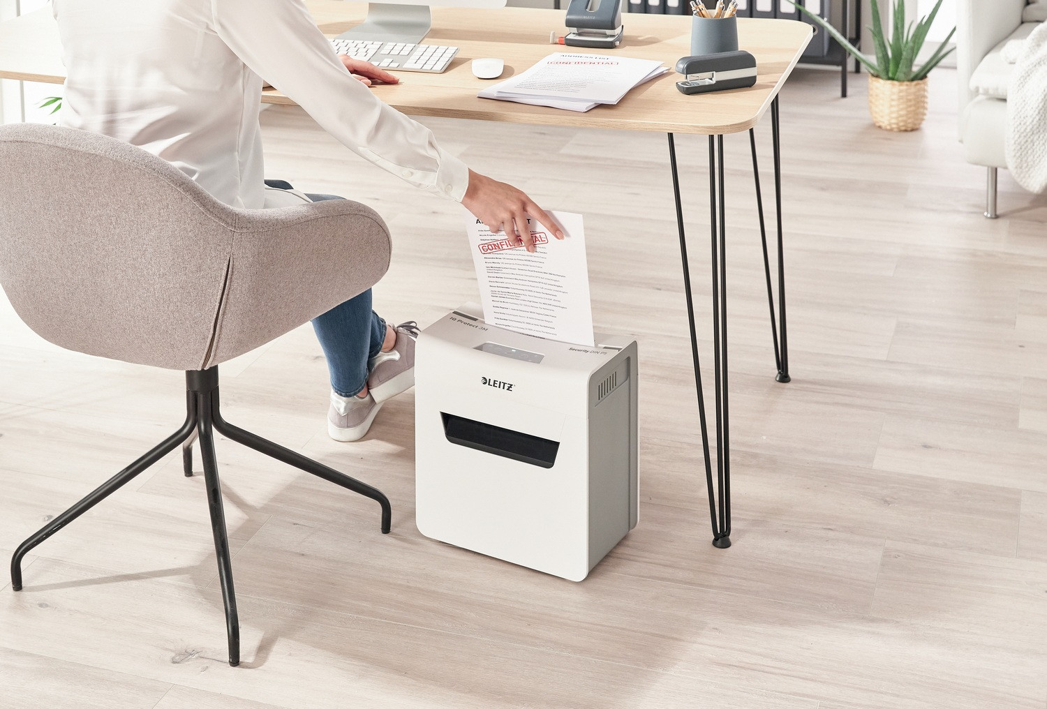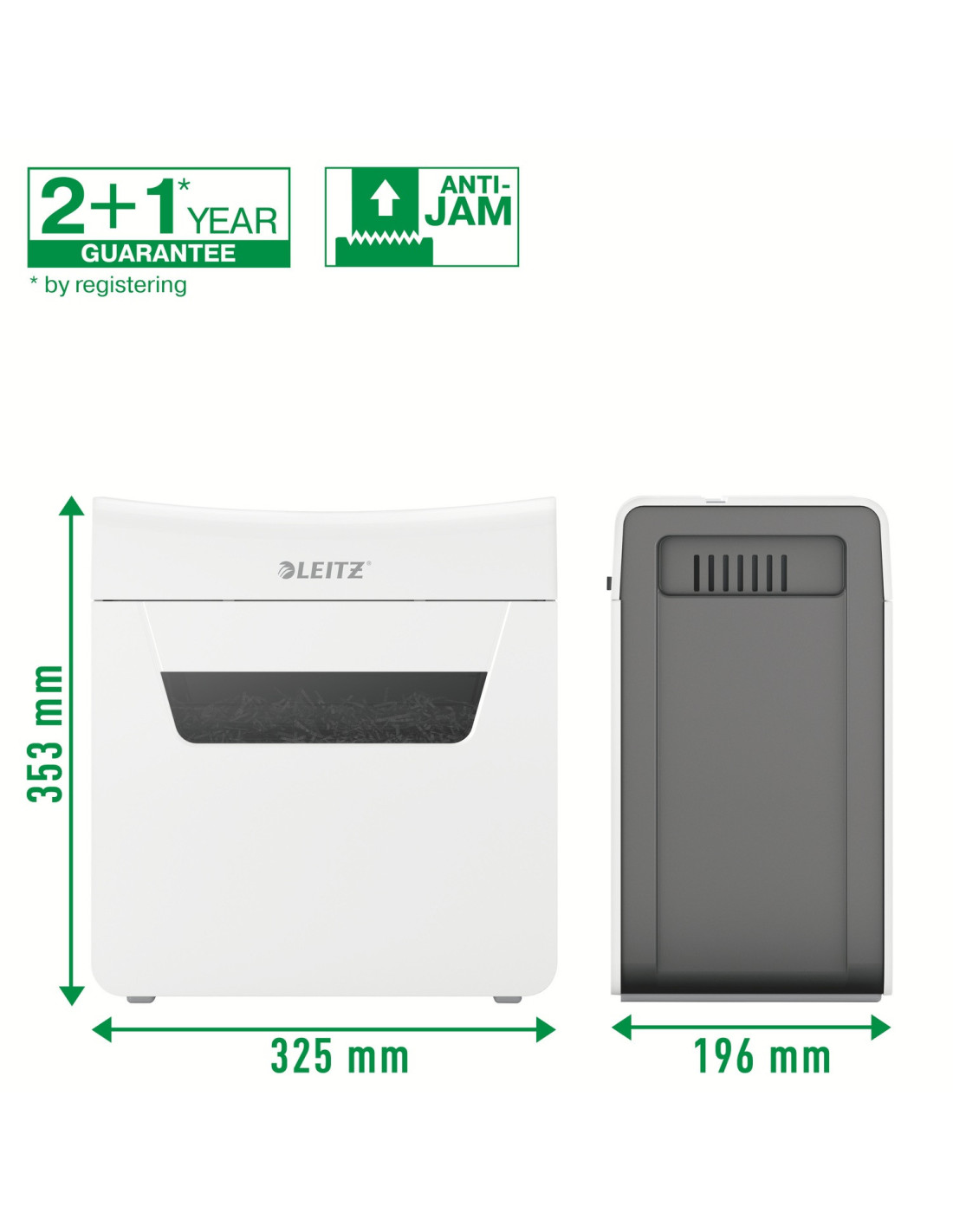 Distrugator manual documente Leitz IQ Protect 3M , 3 coli, P5, micro-cut (tip particule), cos 10 litri, alb, Leitz "80930000"