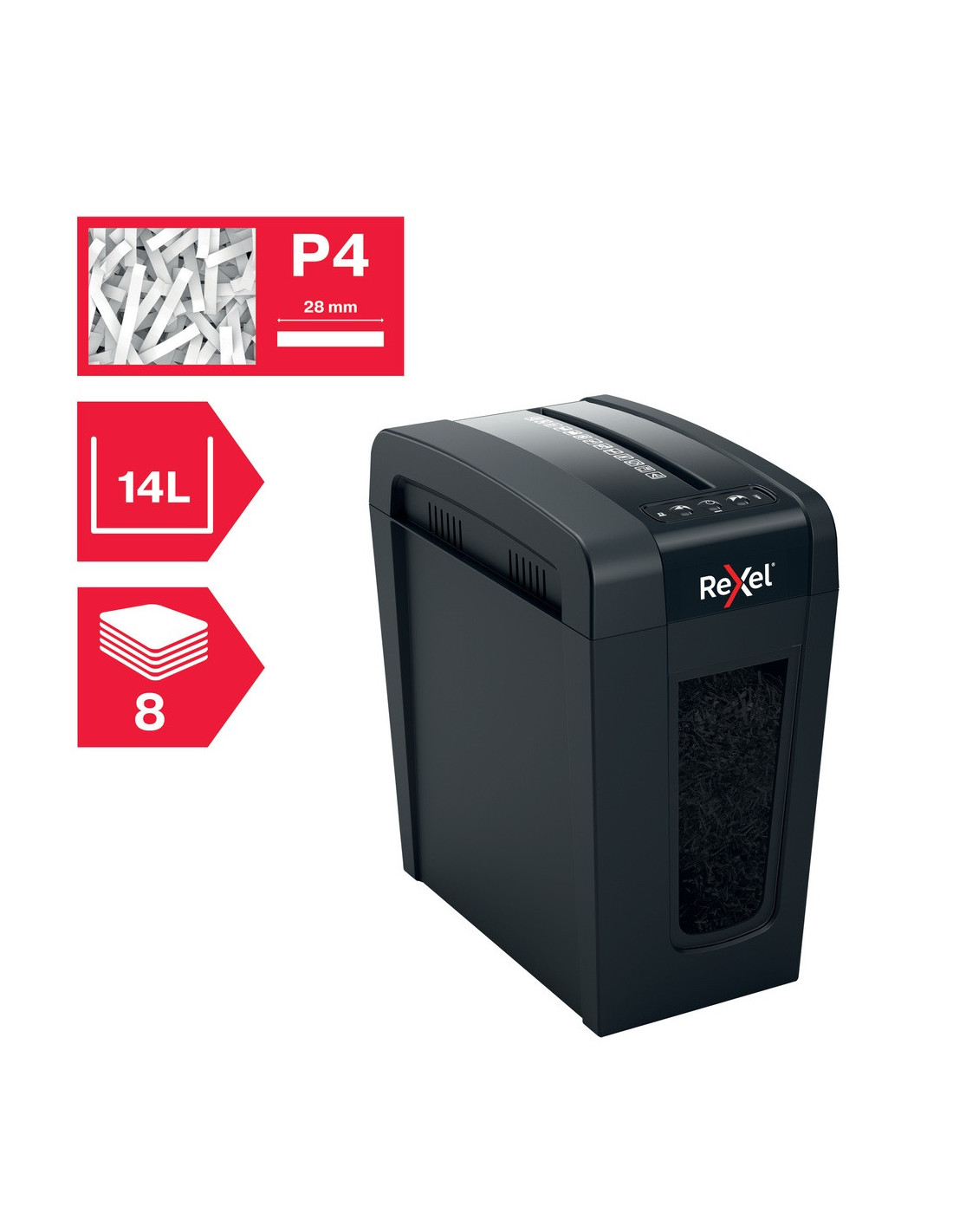 Distrugator manual documente Rexel SECURE X8 Slim, 8 coli, P4, cross-cut (tip confeti), cos 14 litri, negru, "2020126EU" (i