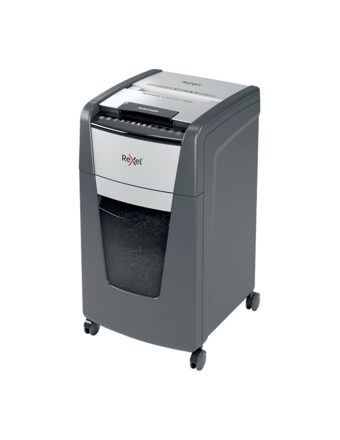 Distrugator documente automat REXEL Optimum 300M, P5, micro-cut, 300 coli, cos 60l, Negru-gri