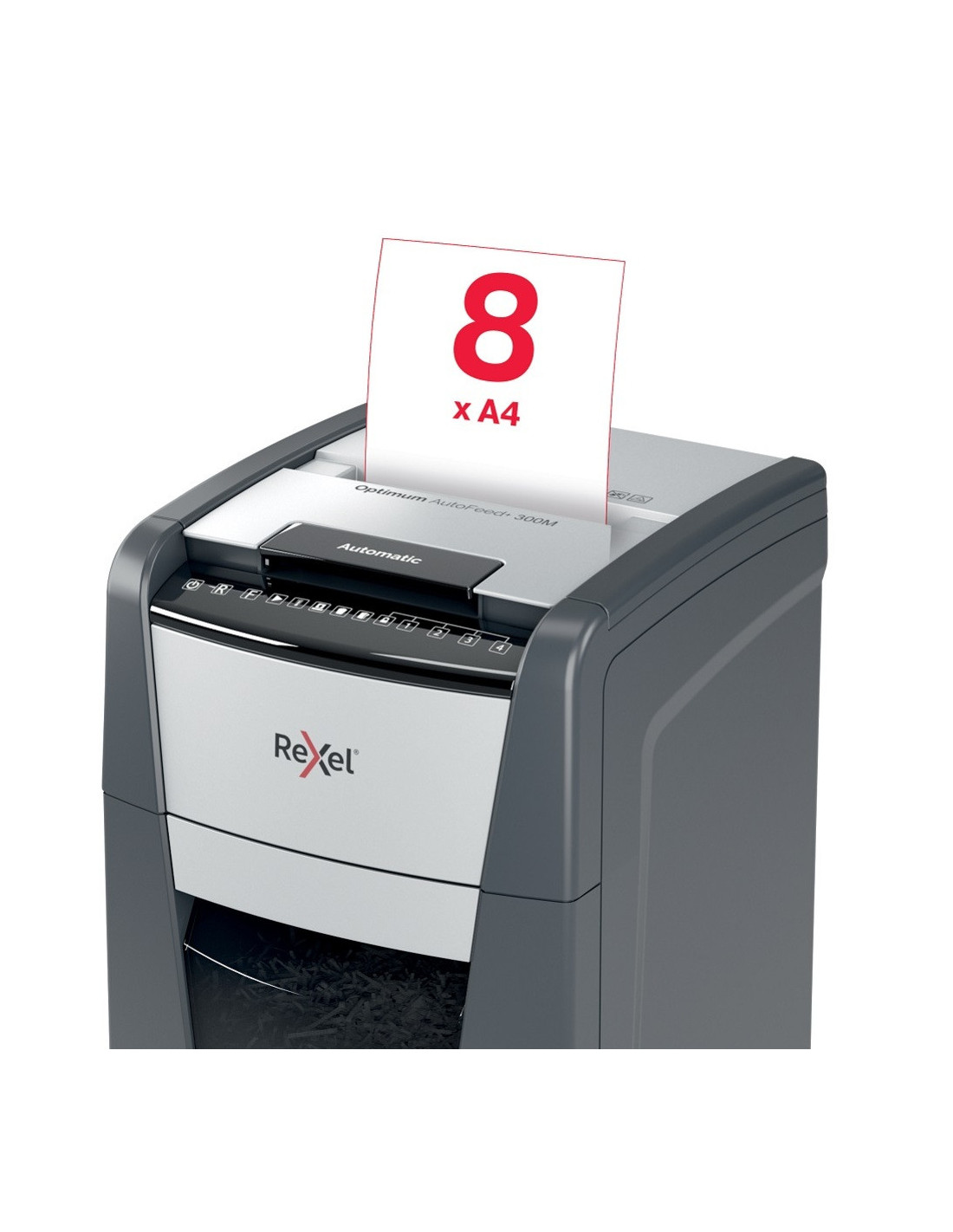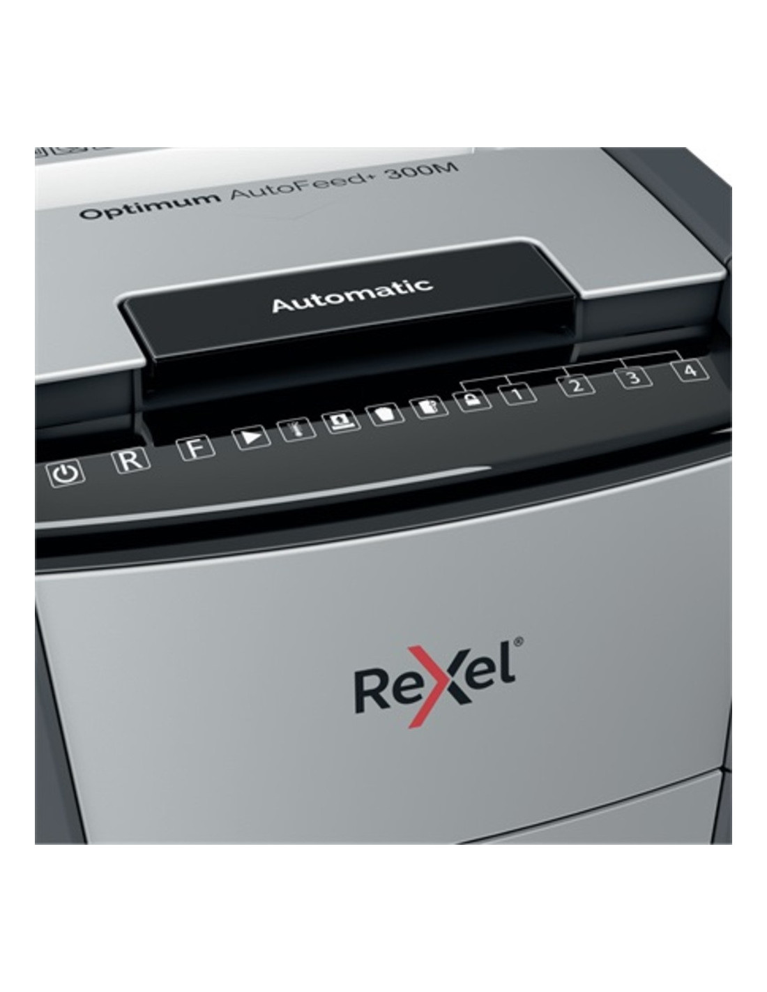 Alege Rexel Optimum 300M pentru distrugere automată rapidă, sigură și ultra-eficientă, chiar și în birourile cu flux intens de documente!