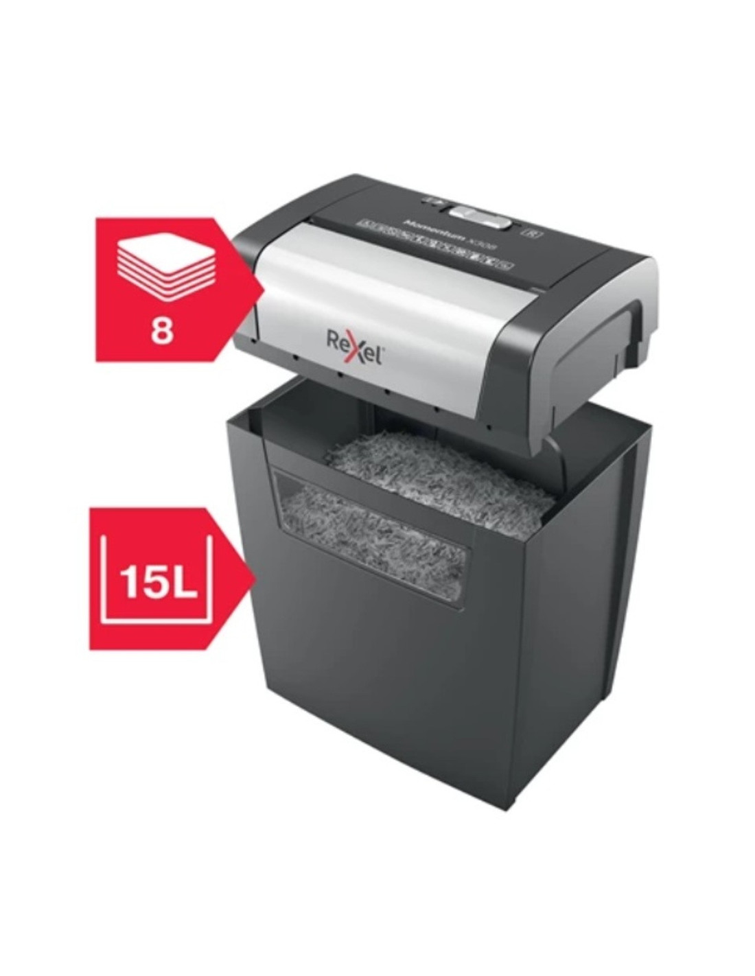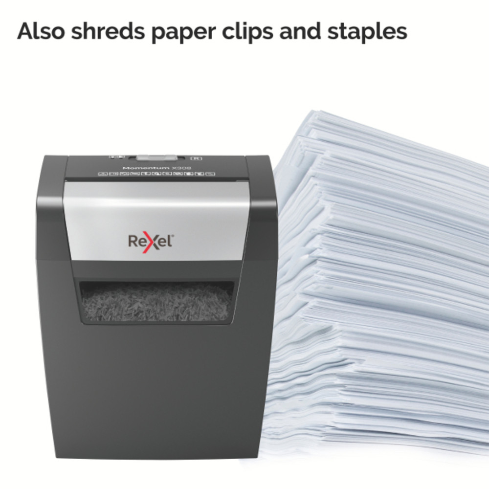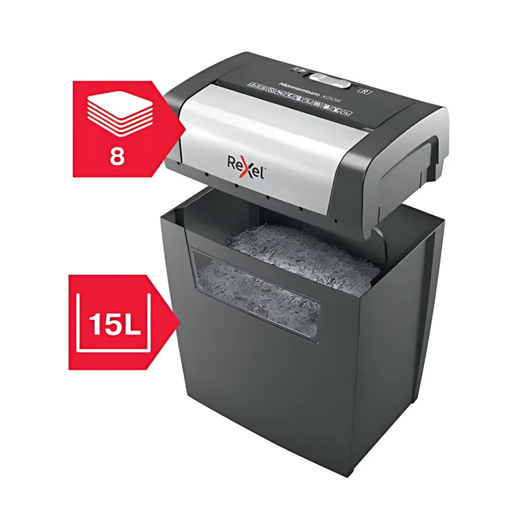 Distrugatorul Rexel Momentum X308 distruge pana la 8 coli de hartie o data.