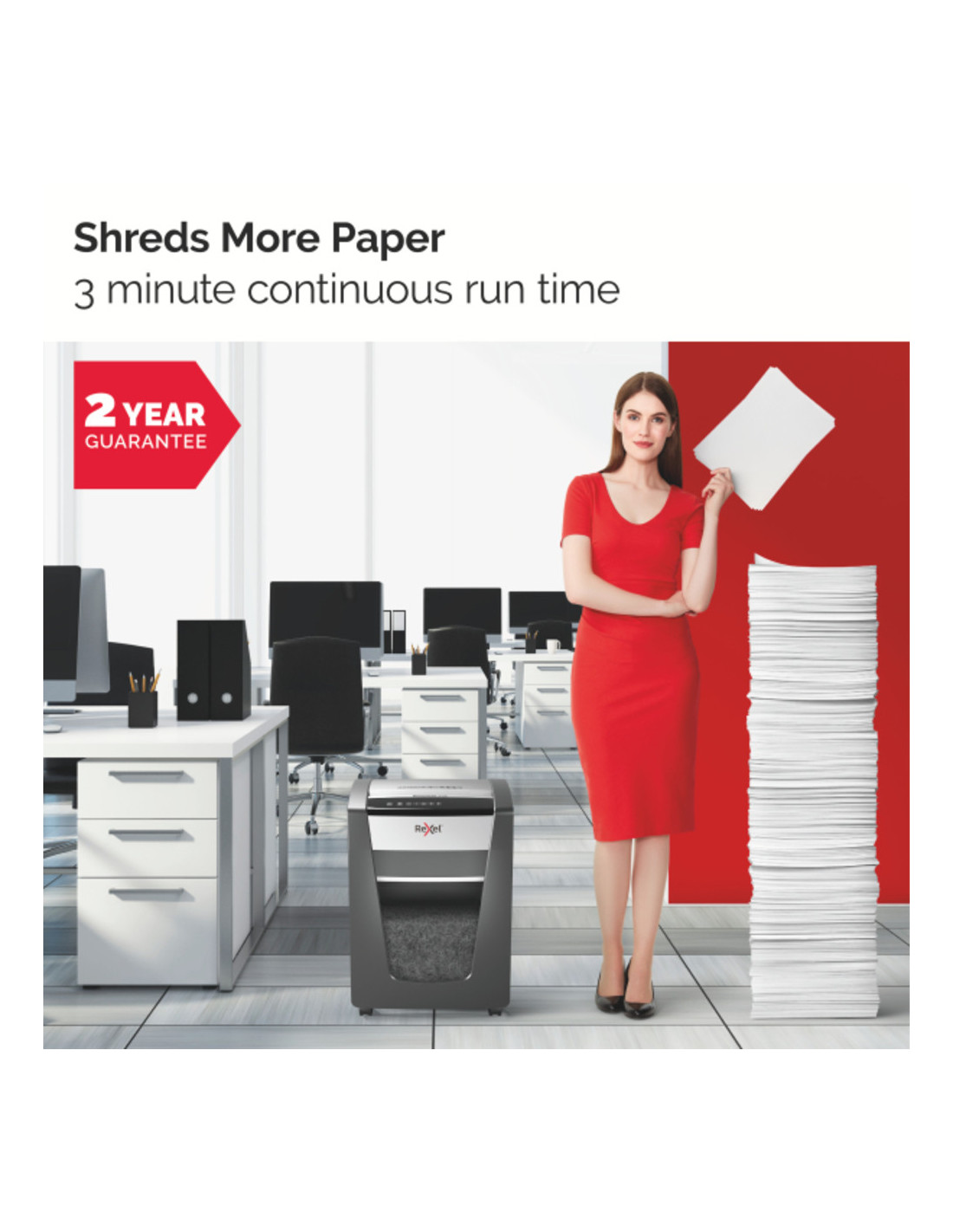Distruge mai multa hartie cu un timp de functionare continuu de 3 minute.