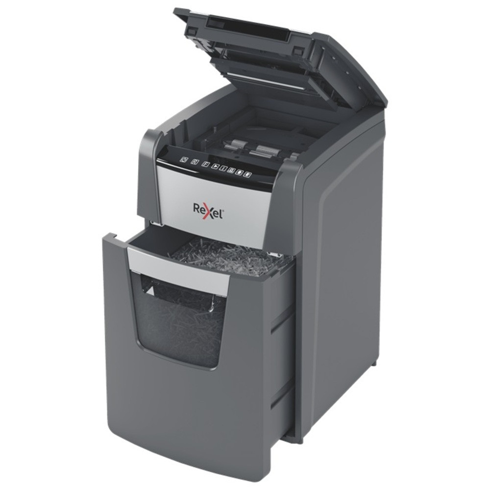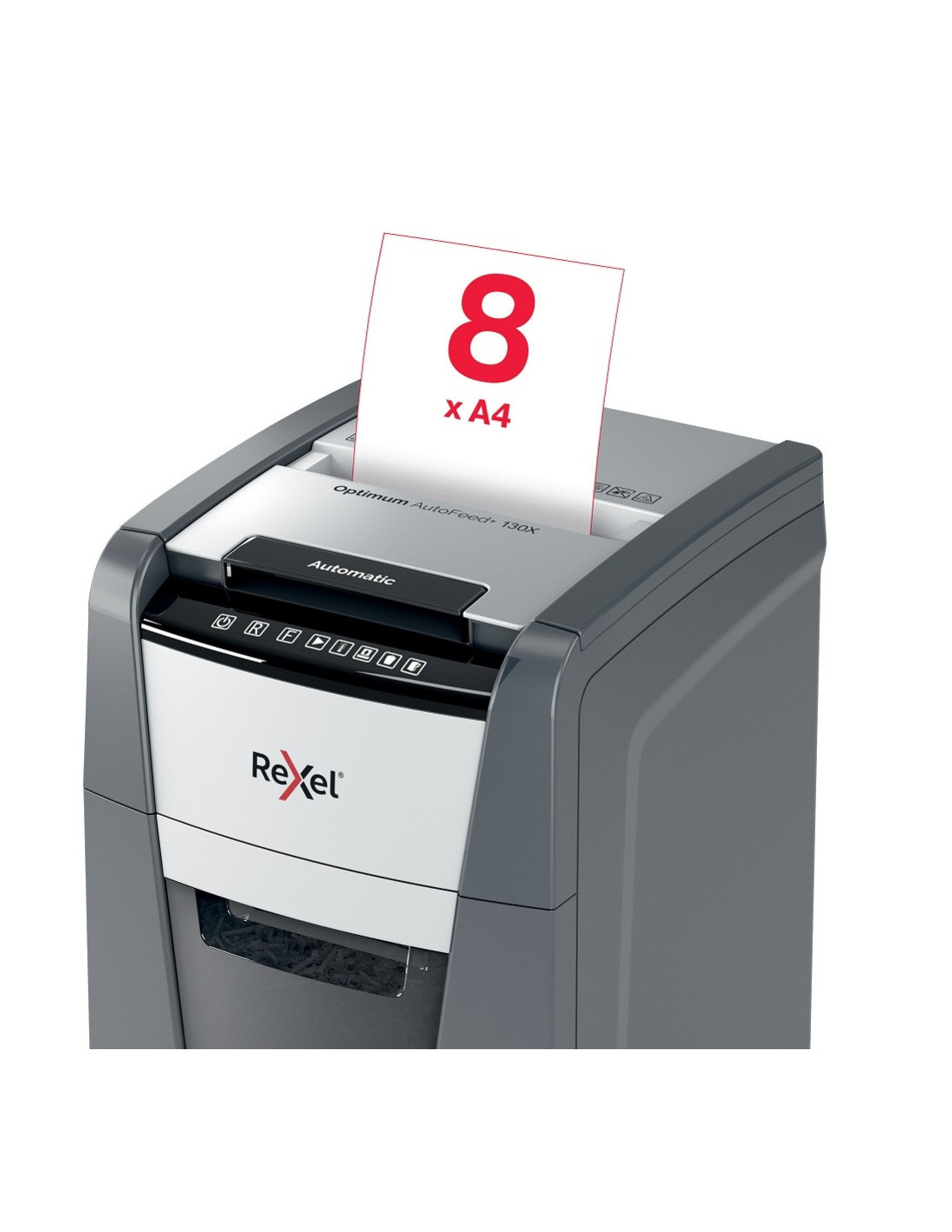 Distrugator documente automat REXEL Optimum 130X, P4, cross-cut, 130 coli, cos 44l, negru-gri