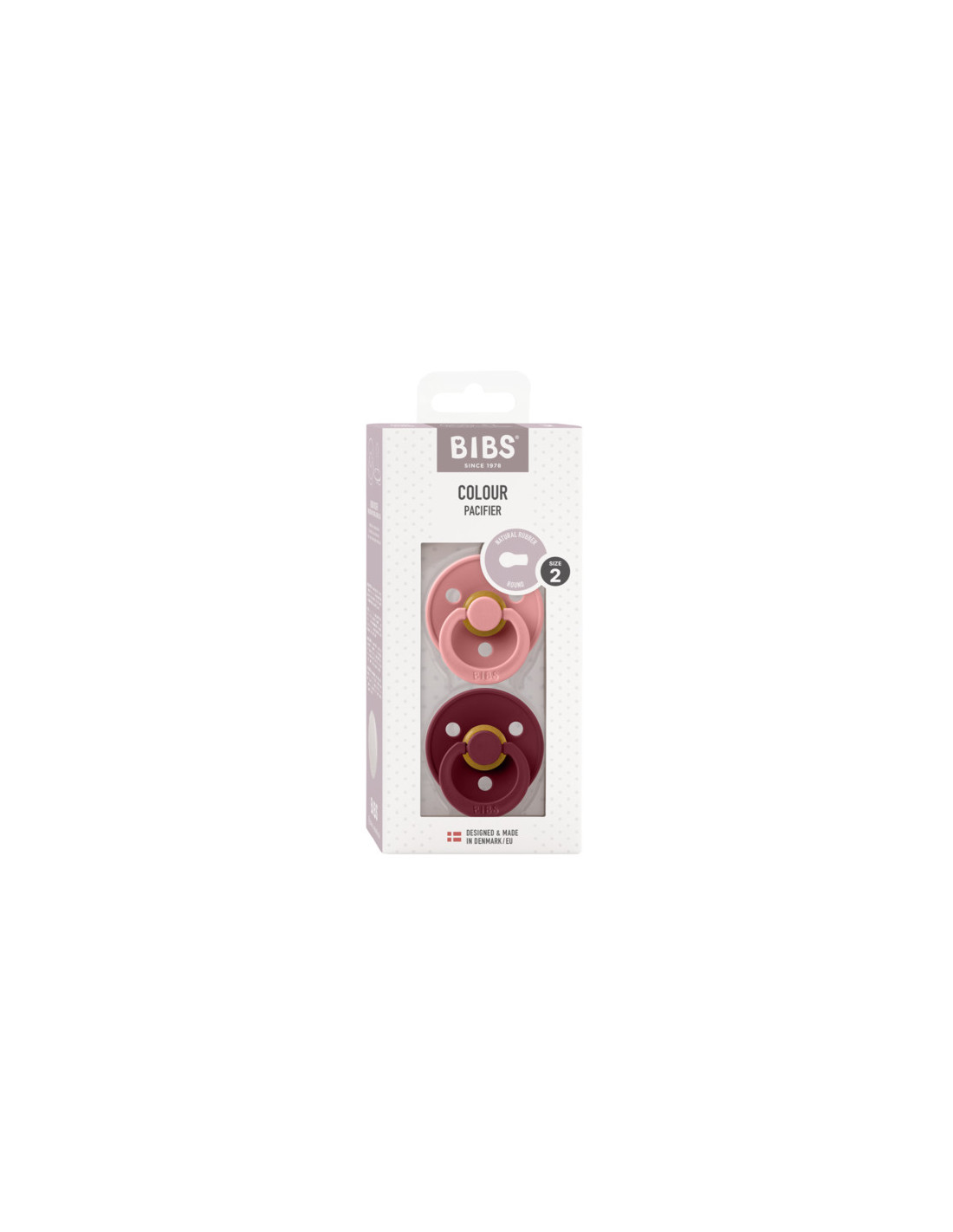 BIBS - Set 2 suzete Colour Latex, tetina rotunda, 6 luni +-Dusty Pink/Elderberry