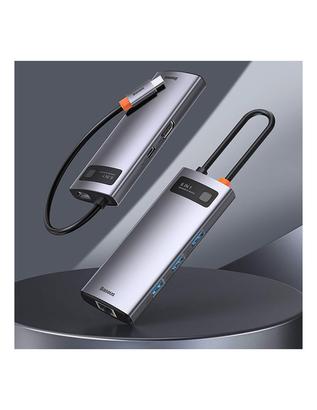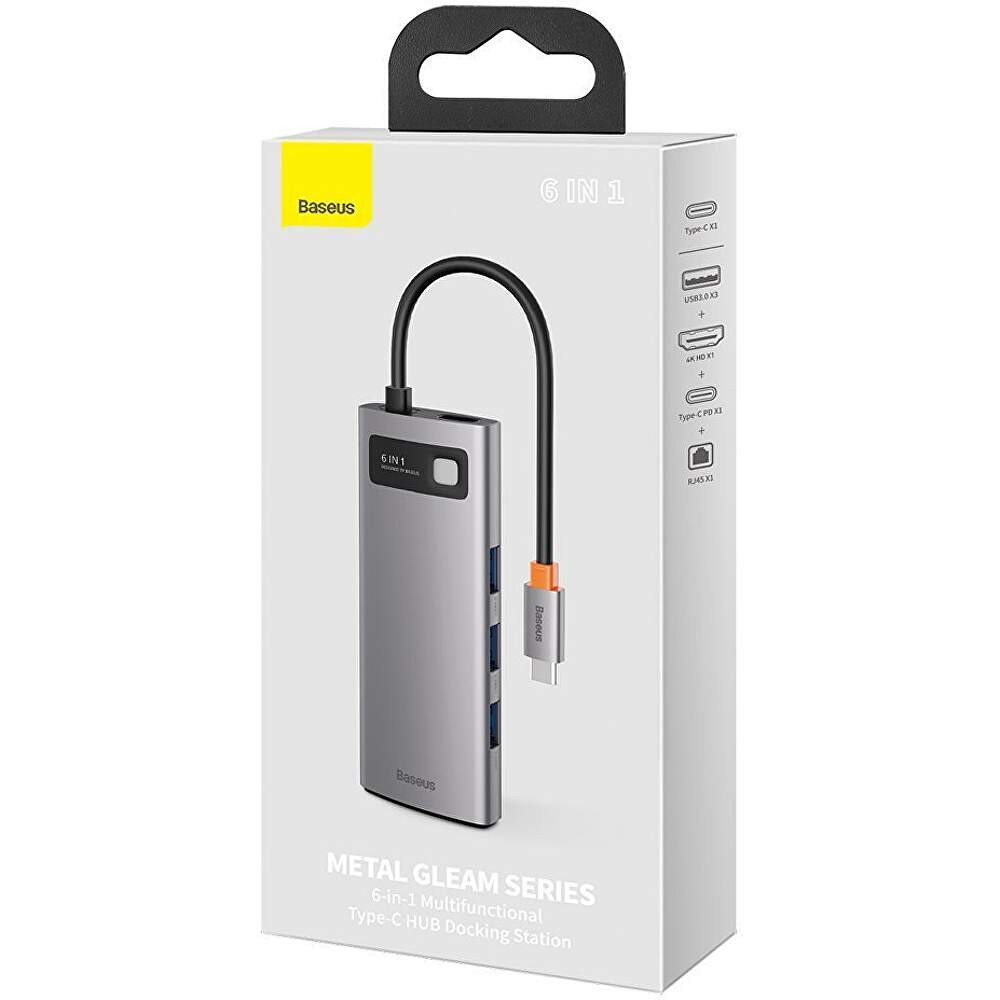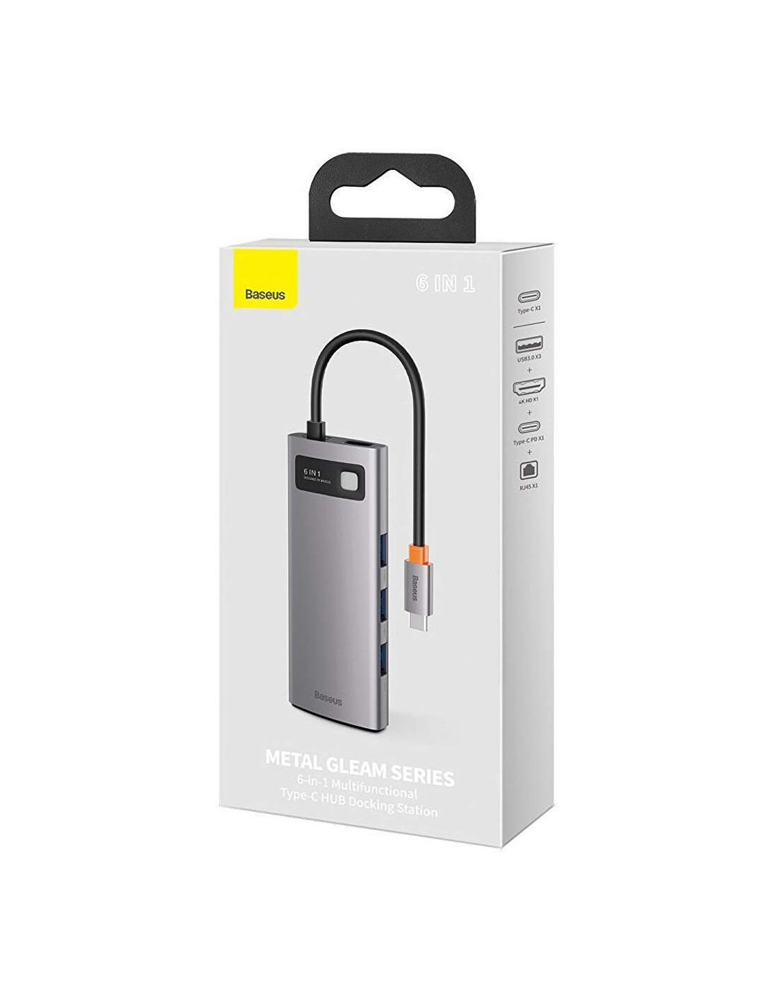 DOCKING Station Baseus Metal Gleam, conectare PC USB Type-C, USB 3.0 x 3, RJ-45 Gigabit LAN x 1, USB Type C x 1 PD 100W 5V / 9V / 14.5V / 20V 5A (Max.), HDMI x 1/4K/30Hz, LED, gri "CAHUB-CW0G" (include TV 0.18lei) - 6953156204645