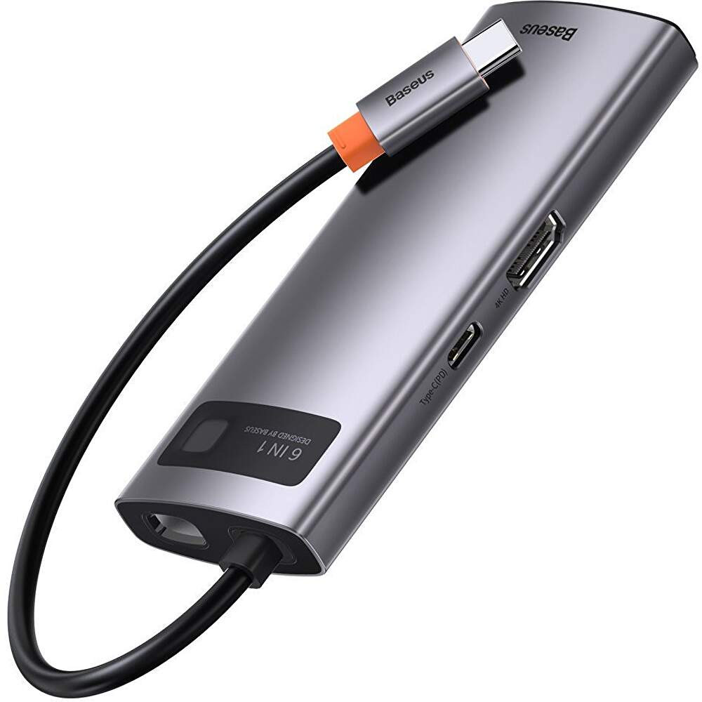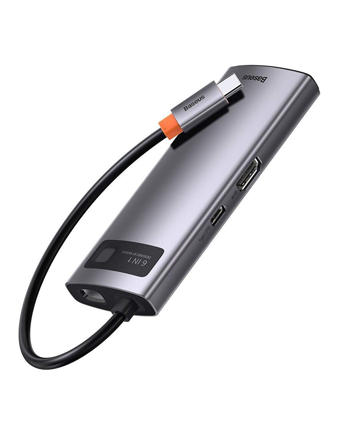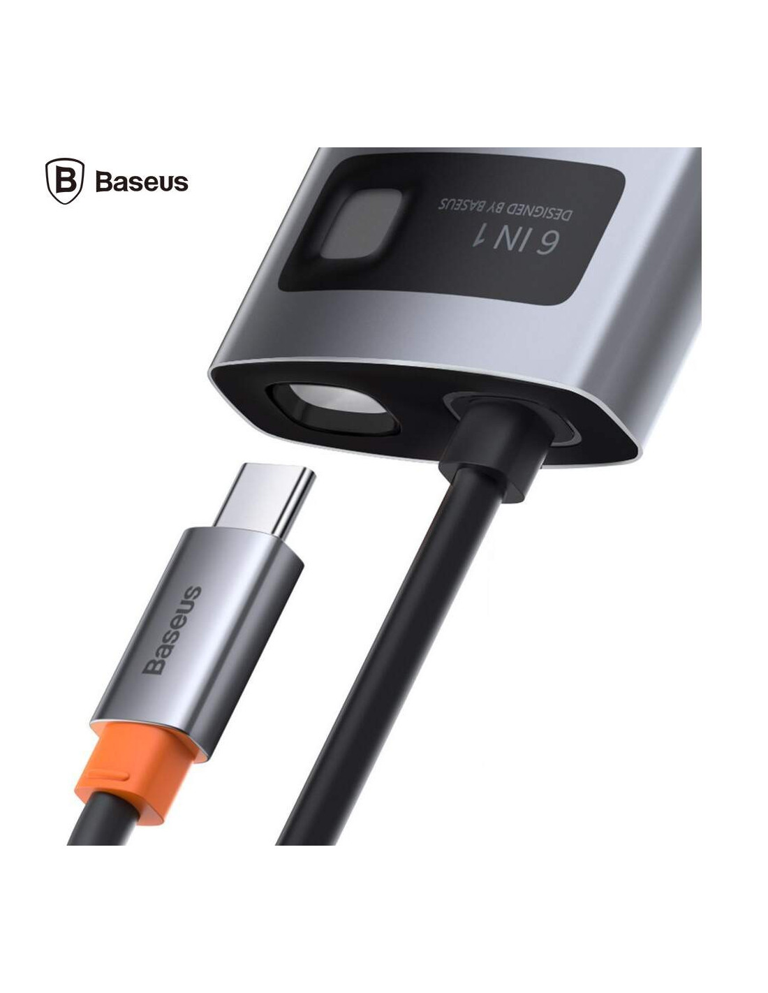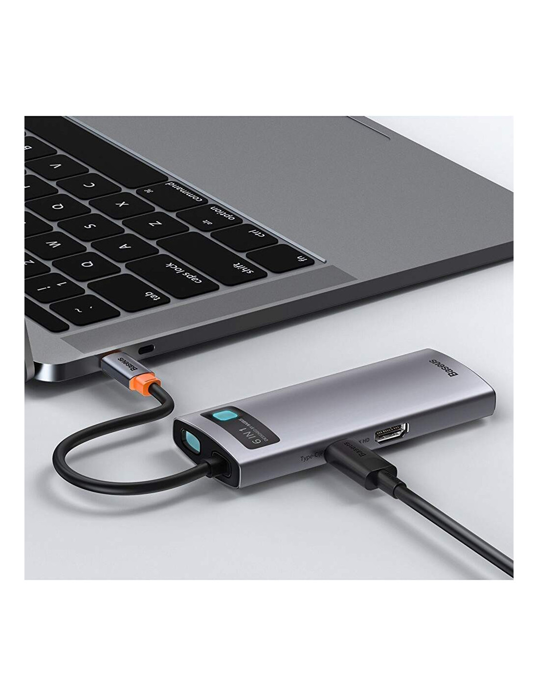 DOCKING Station Baseus Metal Gleam, conectare PC USB Type-C, USB 3.0 x 3, RJ-45 Gigabit LAN x 1, USB Type C x 1 PD 100W 5V / 9V / 14.5V / 20V 5A (Max.), HDMI x 1/4K/30Hz, LED, gri "CAHUB-CW0G" (include TV 0.18lei) - 6953156204645