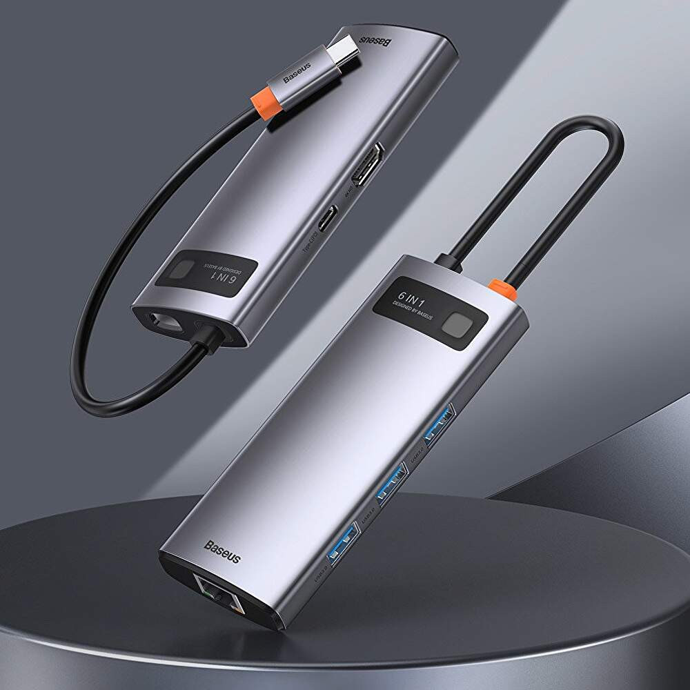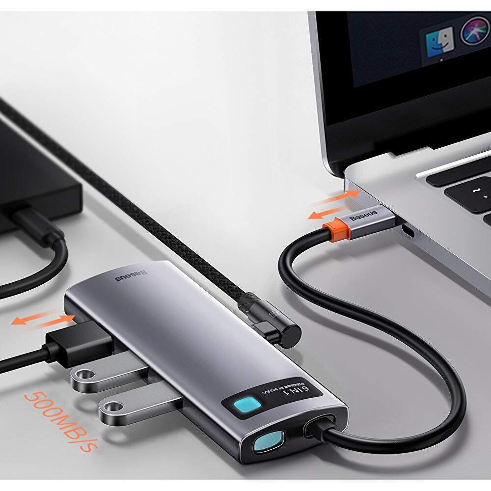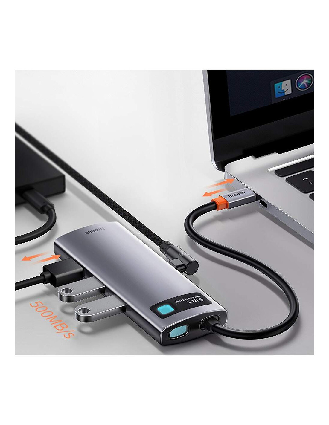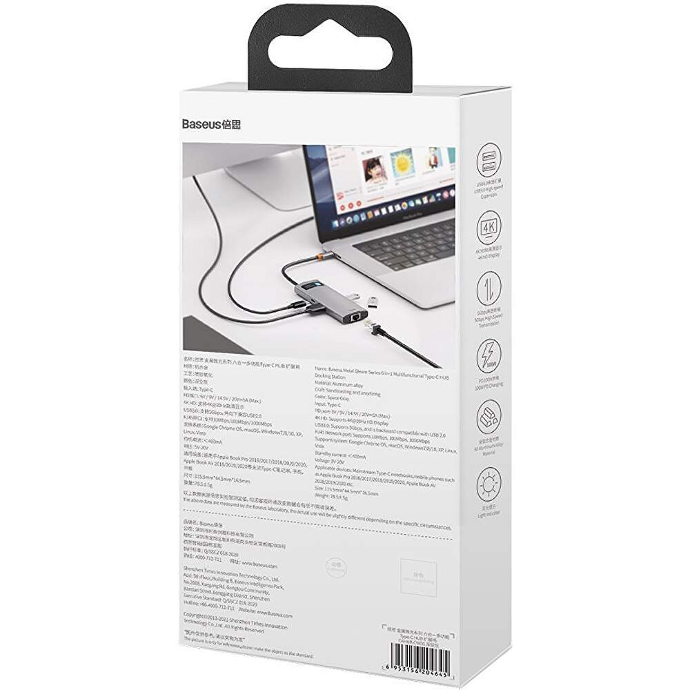 DOCKING Station Baseus Metal Gleam, conectare PC USB Type-C, USB 3.0 x 3, RJ-45 Gigabit LAN x 1, USB Type C x 1 PD 100W 5V / 9V