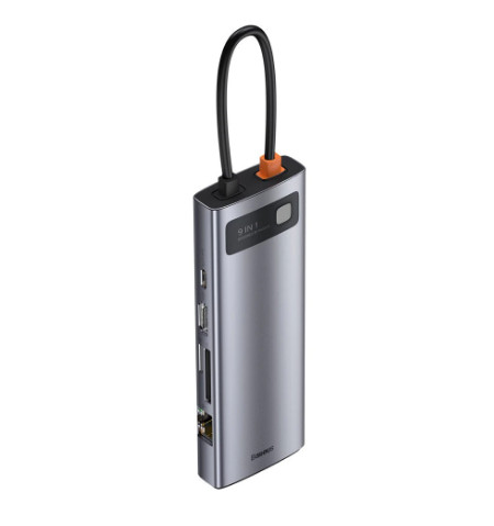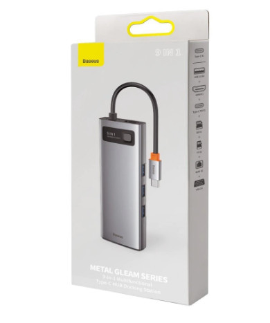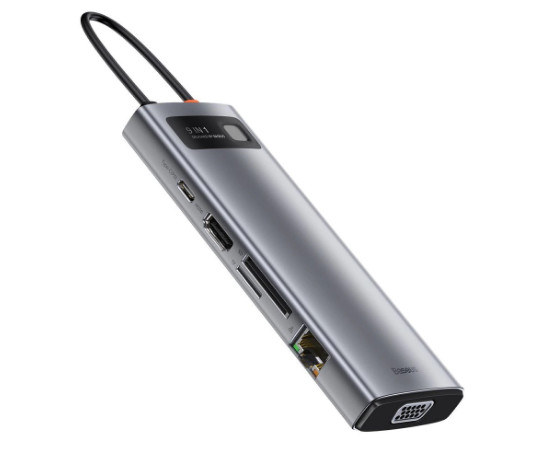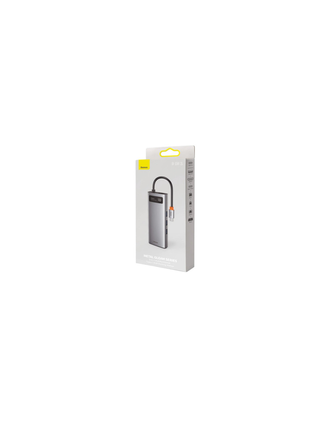 DOCKING Station Baseus Metal Gleam, conectare PC USB Type-C, USB 3.0 x 3, Card reader SD x 1, MicroSD x 1, USB Type C x 1 PD 100W, HDMI x 1/4K/30Hz, VGA x 1/Full HD, RJ-45 Gigabit x 1, gri "CAHUB-CU0G" (include TV 0.75 lei) - 6953156205932