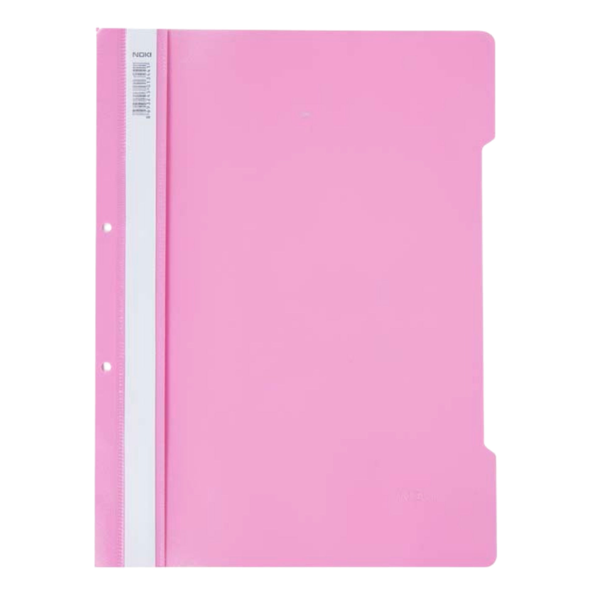 Alege dosarul NOKI roz pal cu șină și perforații pentru o organizare practică, clară și plăcută vizual în activitățile tale zilnice.