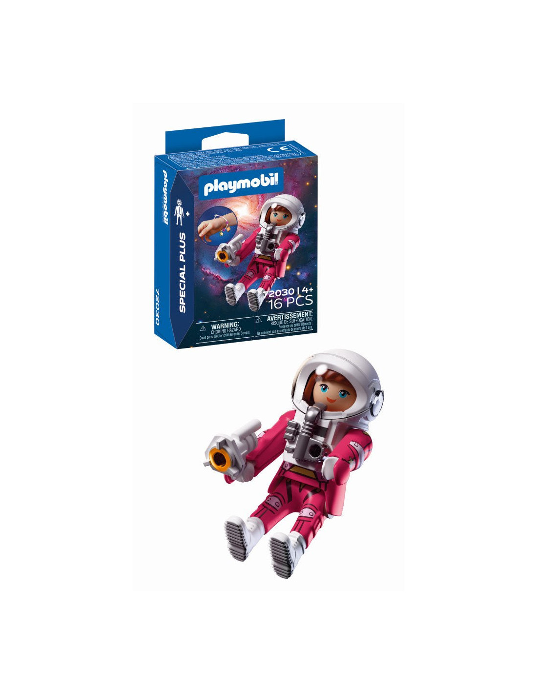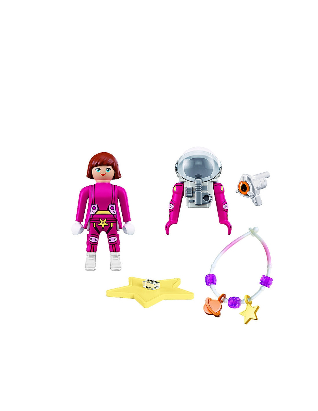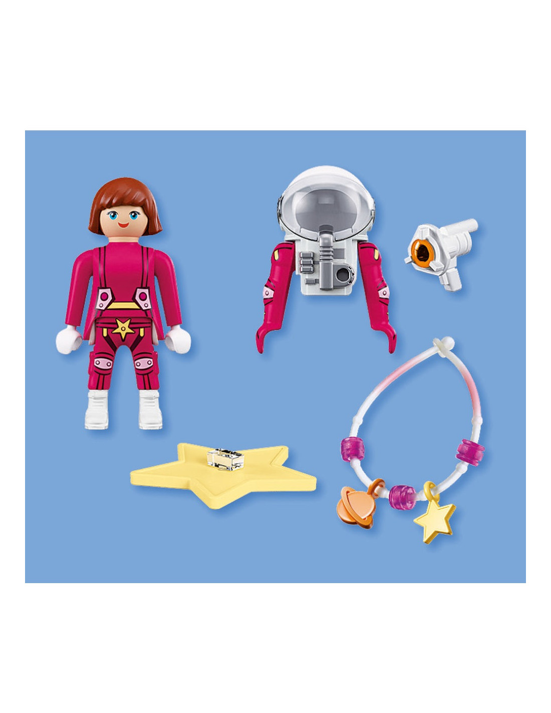 Acest set PLAYMOBIL detaliat invita la calatorii creative mult dincolo de Pamant si extinde fiecare aventura spatiala PLAYMOBIL cu un erou stralucitor si imaginativ.. *Bratara din silicon se potriveste copiilor si adolescentilor, iar zona alba straluceste in intuneric..