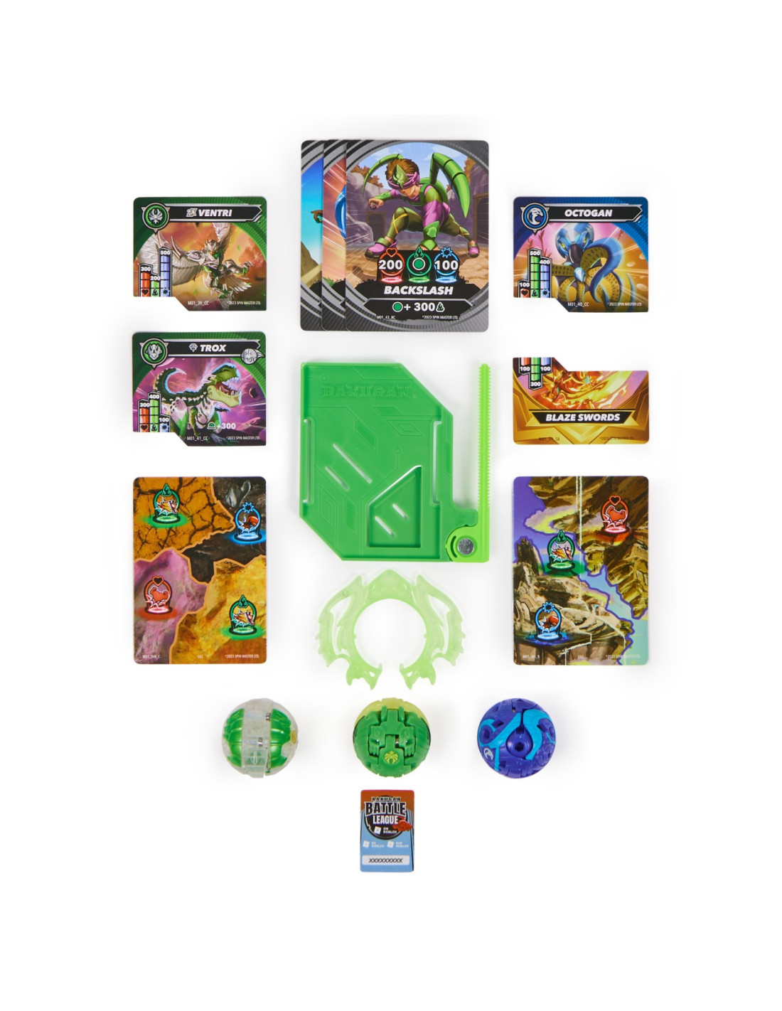 Acest set include 1 Bakugan Atac Special (prin Rotire) si 2 bile Bakugan de baza, plus carti de joc pentru a intra in actiune.
