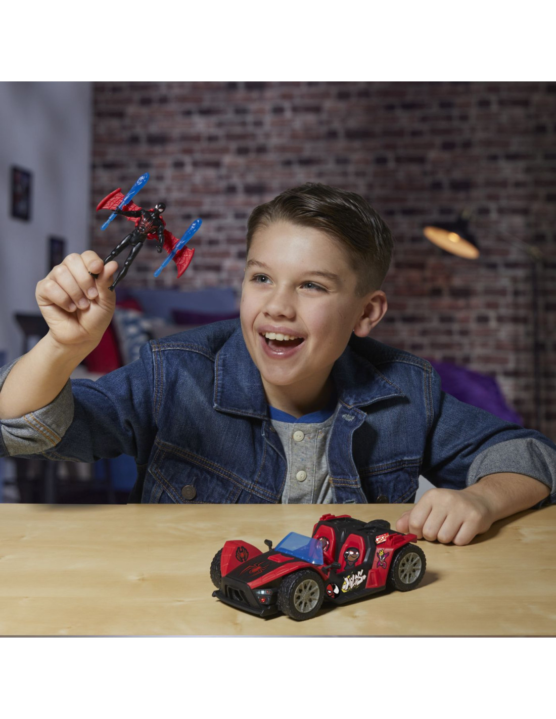 Figurina Miles Morales, la scara de 10 cm si vehiculul ei.