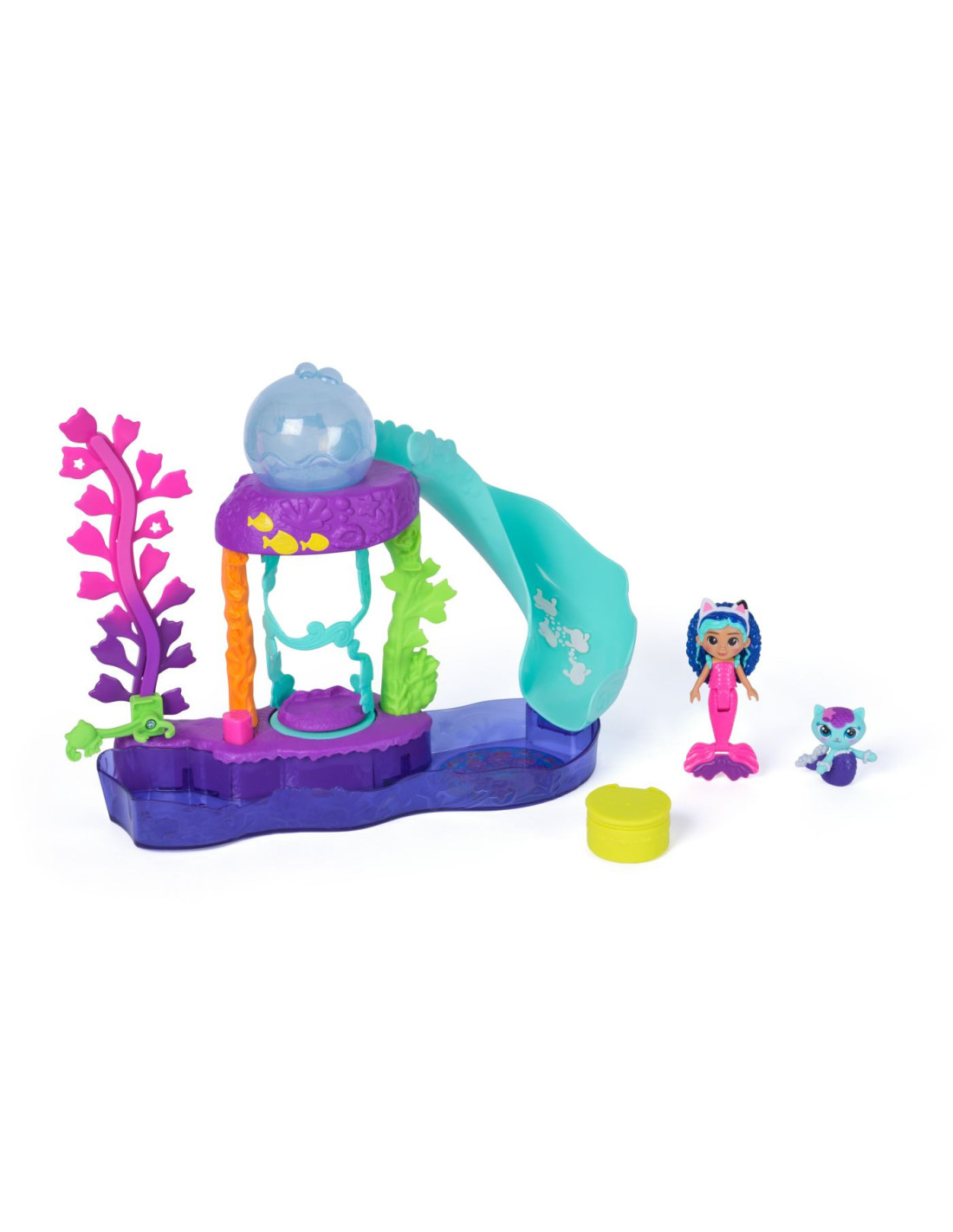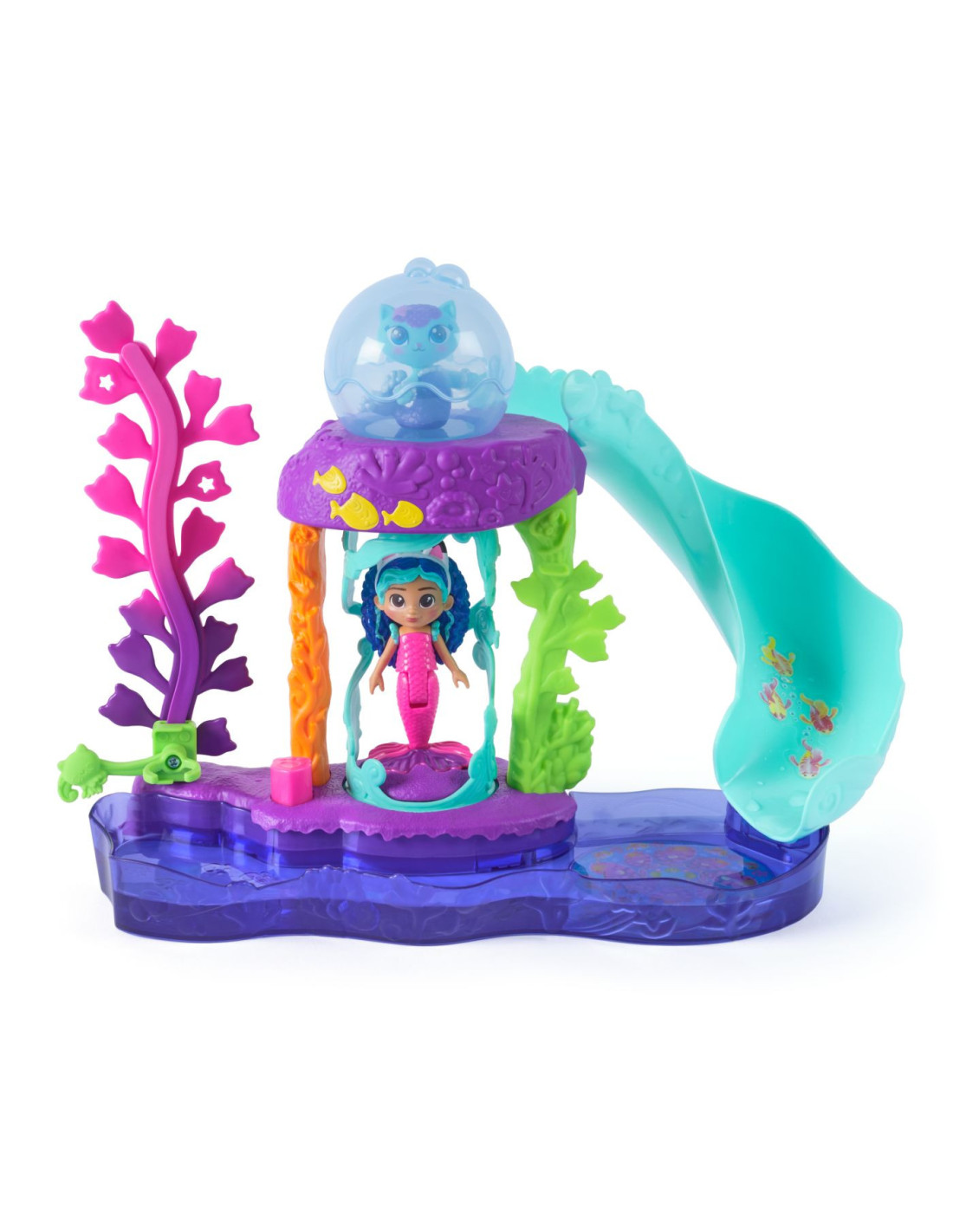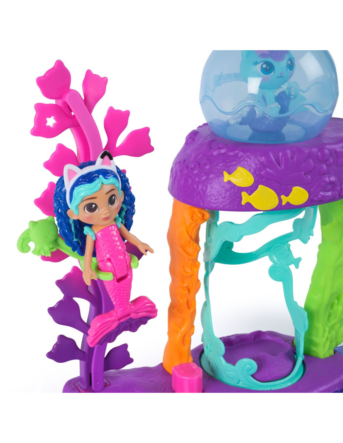 Include o figurina Gabby in costum de sirena si un personaj MerCat adorabil, gata de aventuri acvatice.