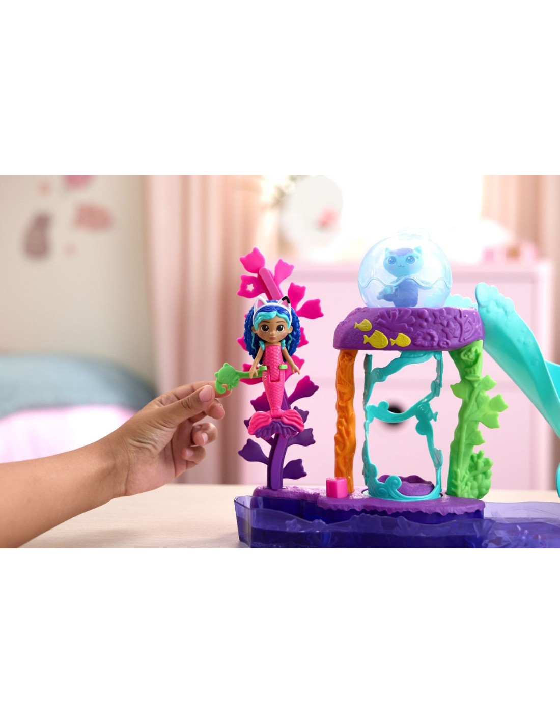 Setul de joaca Gabby's Dollhouse MerCat's acvariul colorat aduce magia subacvatica direct in lumea copiilor.
