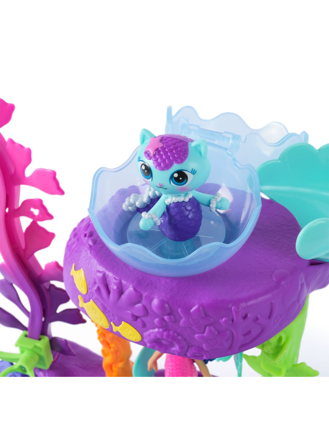 Copiii pot explora toboganul turcoaz in forma de coada de pisica, pot descoperi accesorii tematice si pot crea povesti minunate in universul de joaca.