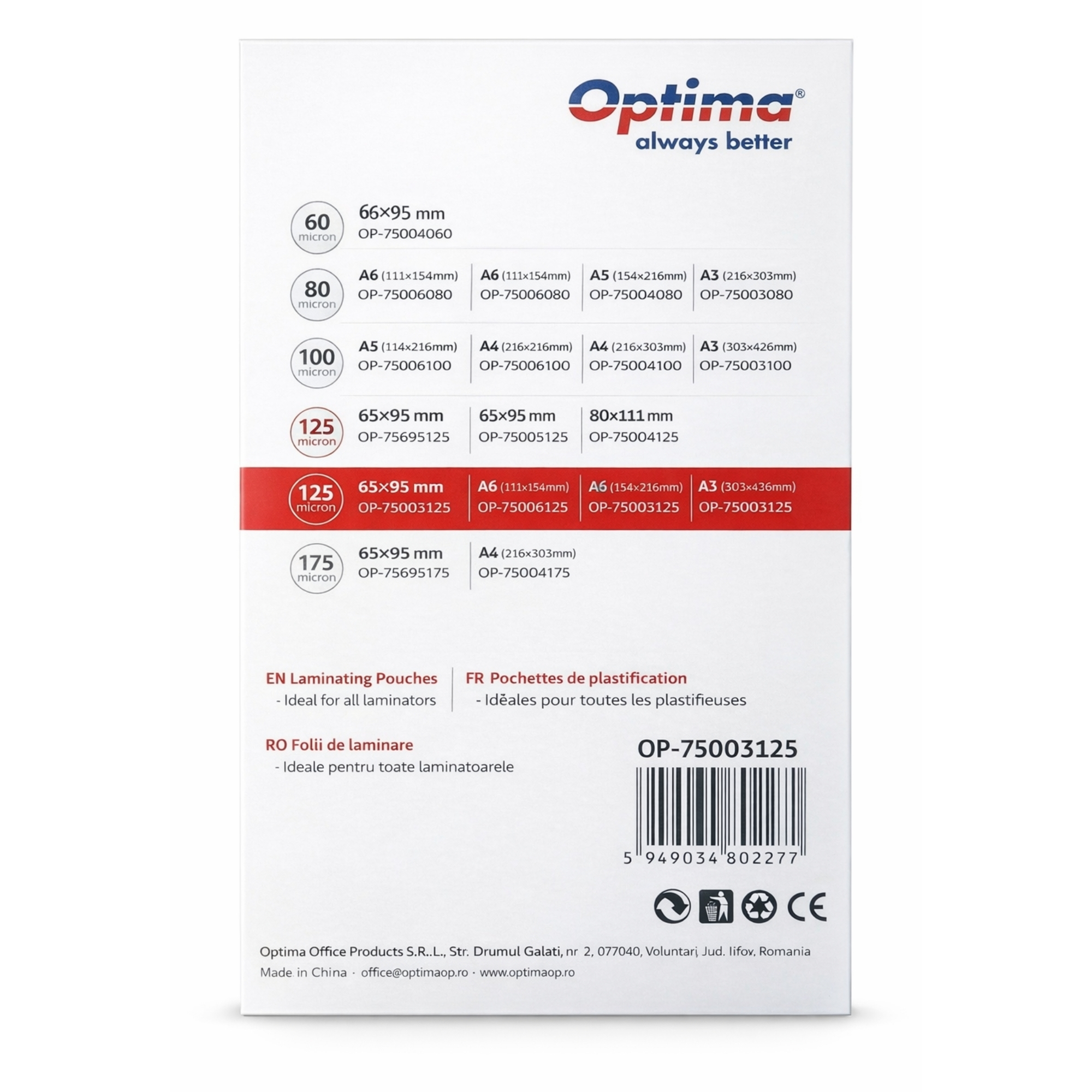 Folia pentru laminare Optima A3, 125 microni, oferă o soluție fiabilă și eficientă pentru protejarea documentelor mari, asigurând durabilitate, claritate și un finisaj profesional în orice context.