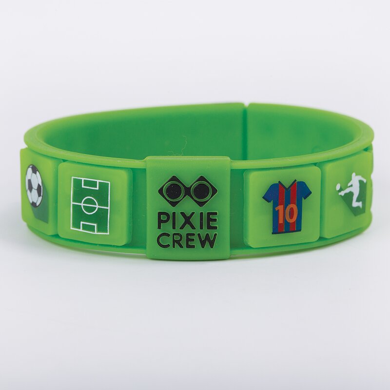 - Setul include: 4 multi-pixeli „Fotbal” cu o dimensiune de 15 mm x 15 mm, 30 de pixeli multicolori cu o dimensiune de 6 mm x 6 mm, si o bratara de 205 mm lungime.