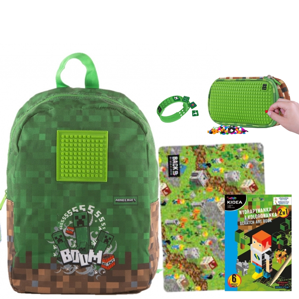 Set gradinita PIXIE - Ghiozdan, Penar etui, Bratara, Carte 2 in 1, Planseta plastelina, Motiv minecraft 1