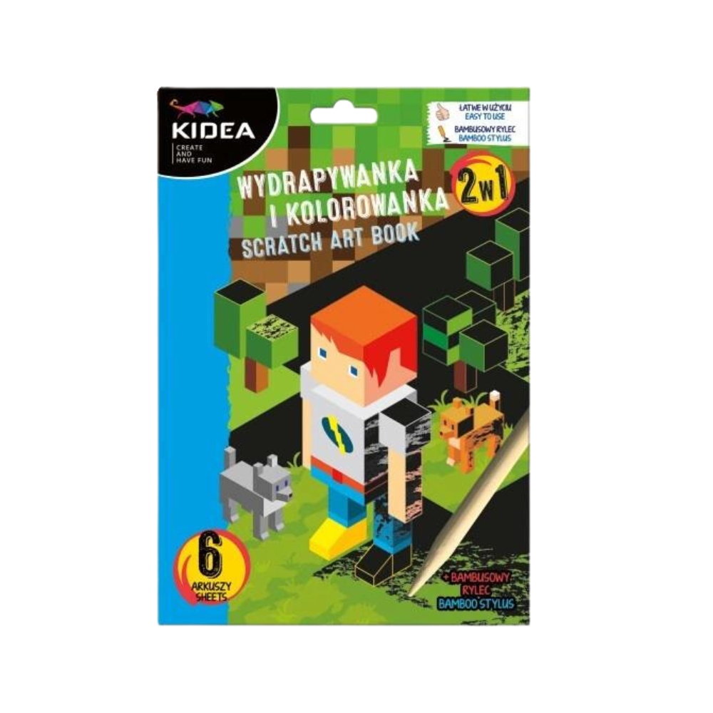 - În set gasiti până la 6 cărți de colorat răzuibile cu o temă din jocul dvs. preferat pe spate și un stylus din lemn.