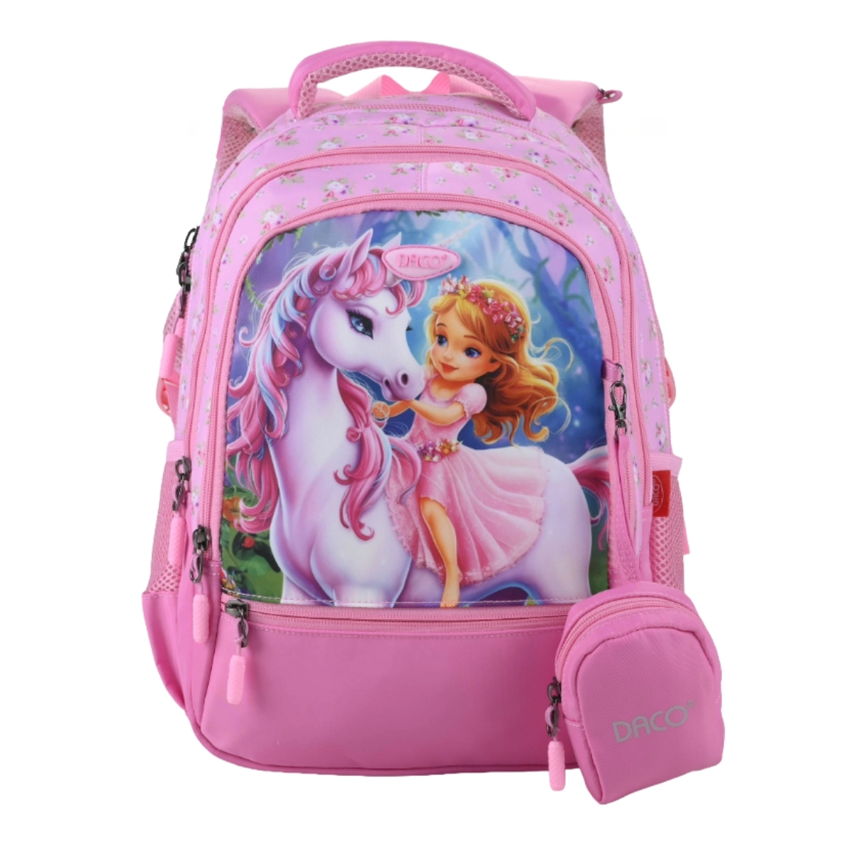 Ghiozdan scoala Daco GH3022, 4 compartimente, 38 x 30 x 17 cm, Unicorn si printesa